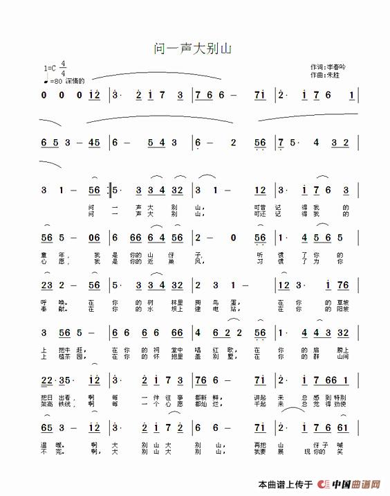 今天突然在移动硬盘中找到这首歌的简谱了。太意外了, 好多年去了。就发出来吧
