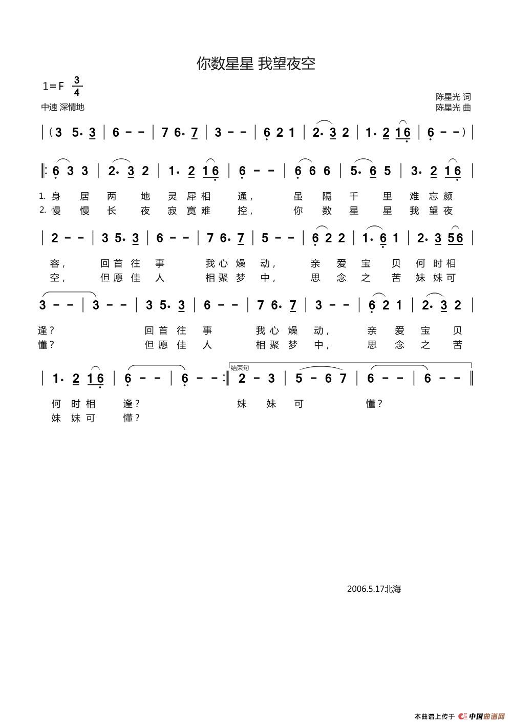 关于《你数星星我望夜空》曲谱的评论