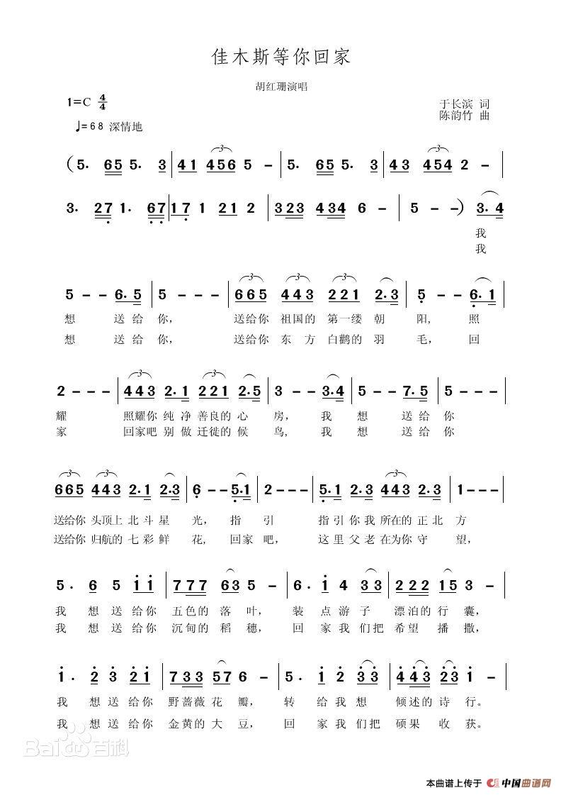 《佳木斯等你回家》 是一首于长滨作词、陈韵竹作曲、胡红珊原唱的华语原创歌曲。