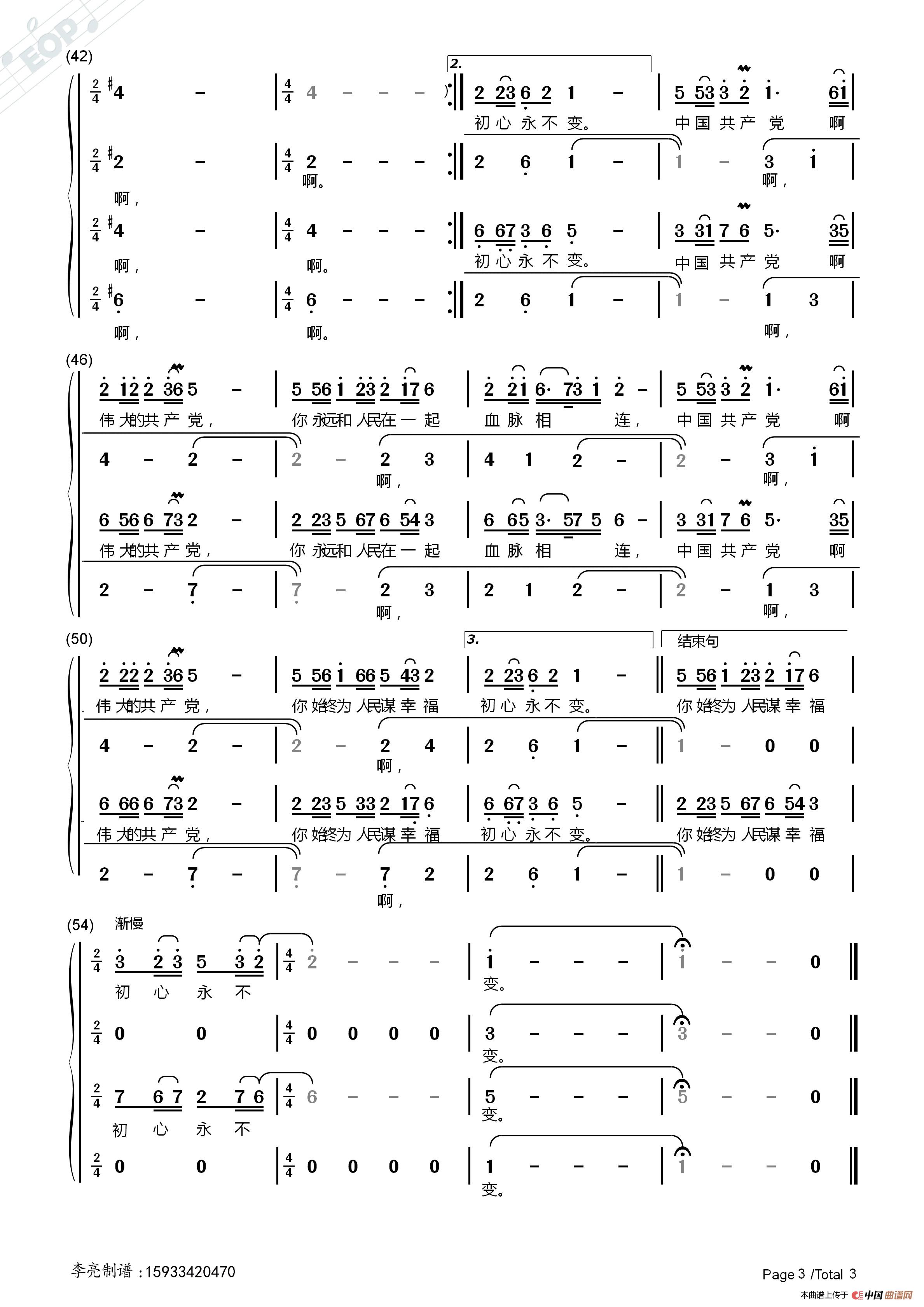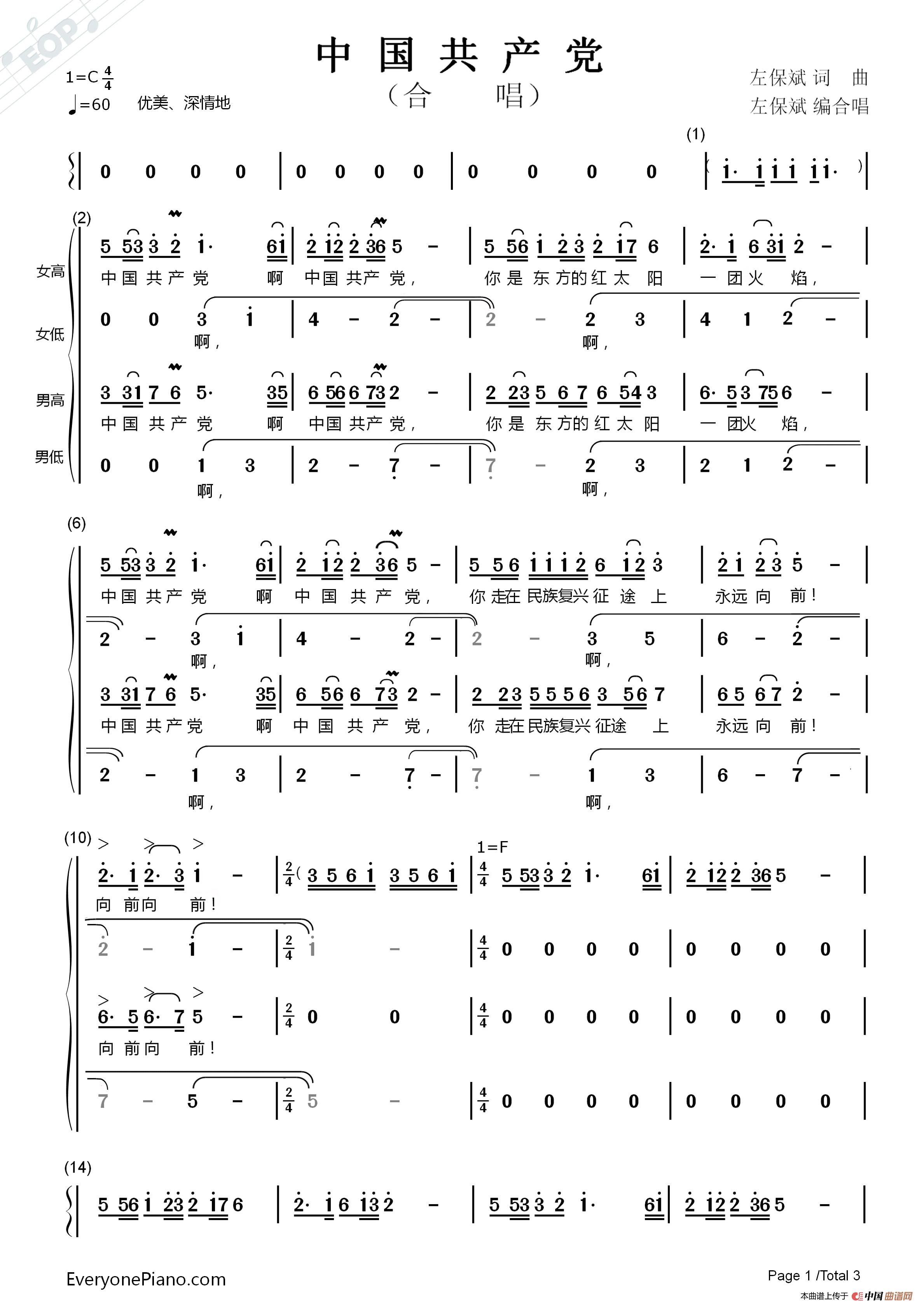 关于《中国共产党(四声部合唱)》曲谱的评论