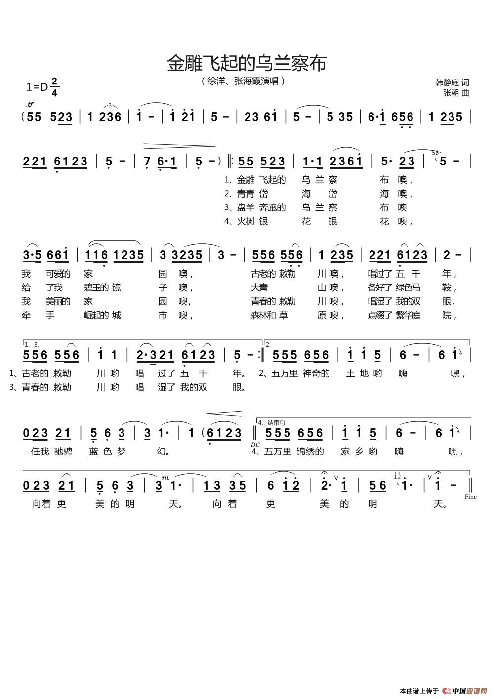 关于《金雕飞起的乌兰察布》曲谱的评论