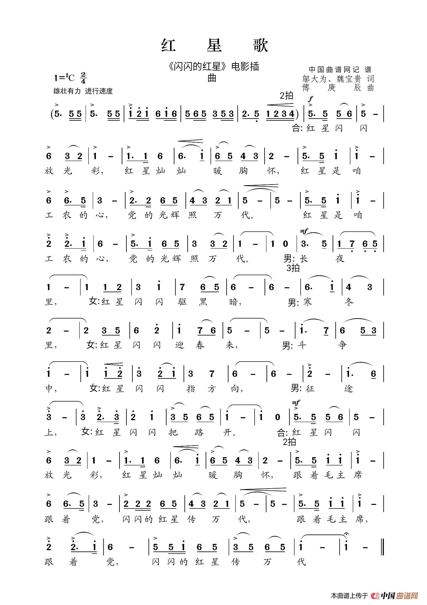 提示:在曲谱图片上单击右键,选择“图片另存为...”即可将曲谱保存到您的电脑中,打印时候可将图片插入到WORD中,调整合适大小打印即可。