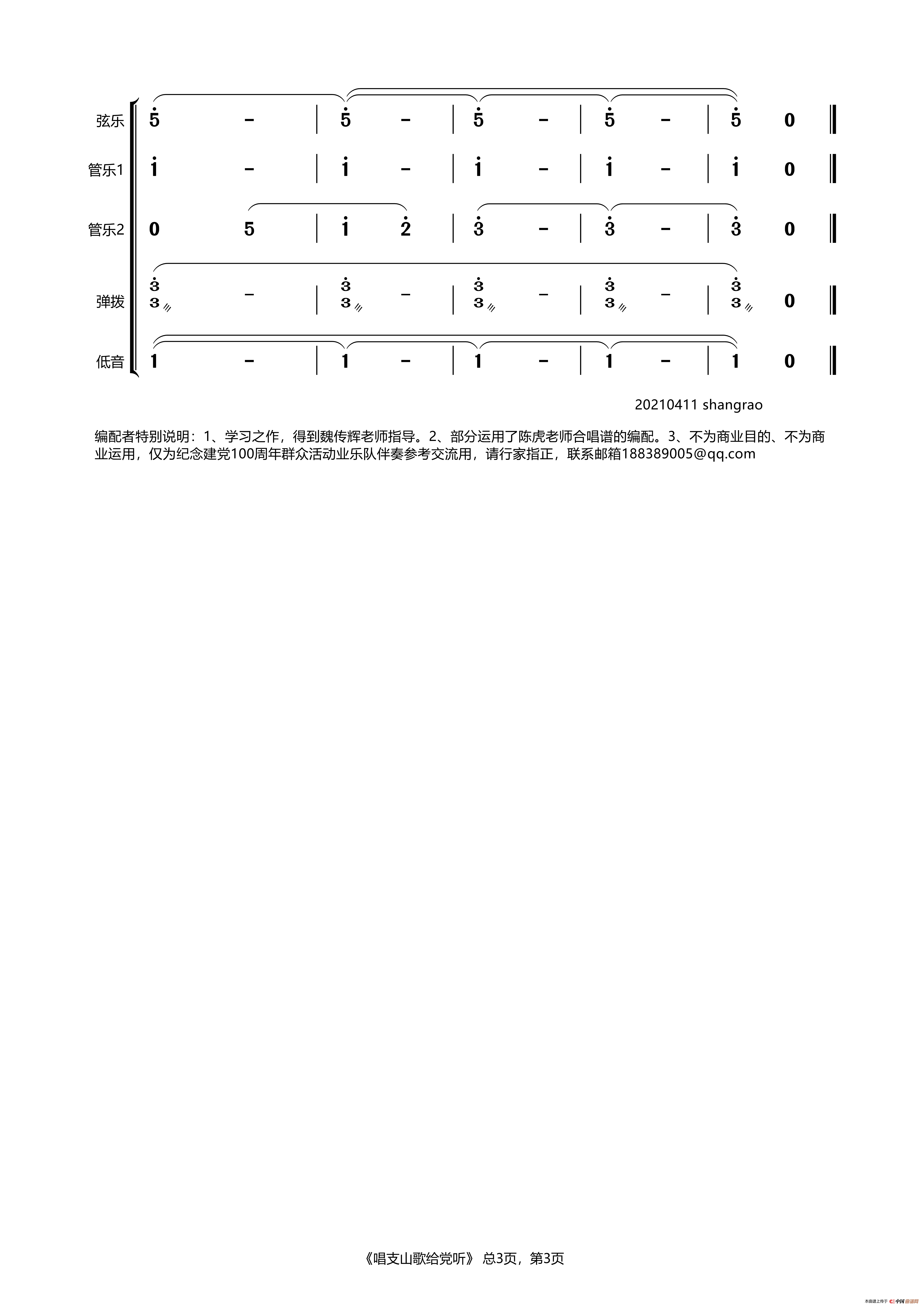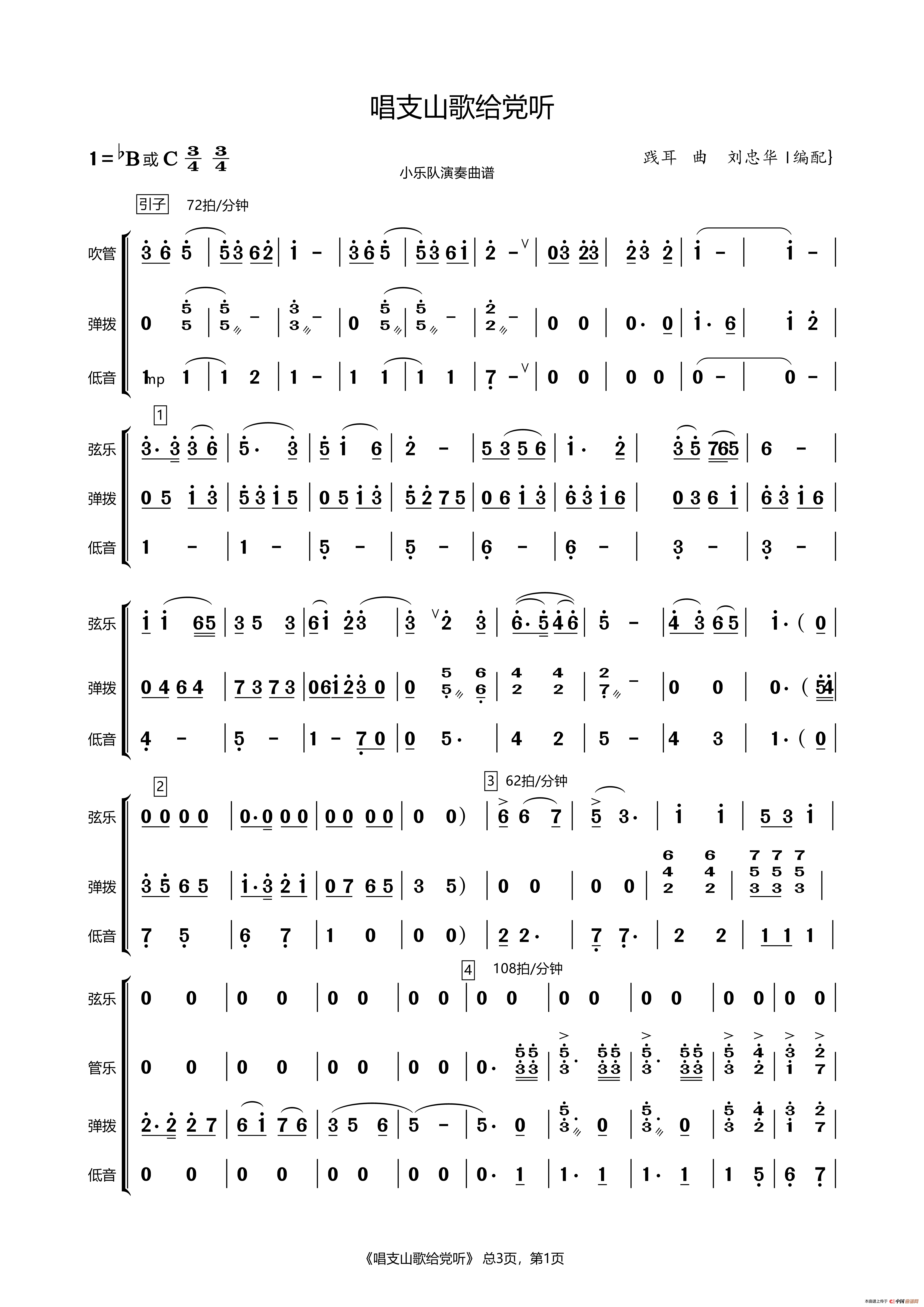 关于《唱支山歌给党听器乐总分谱》曲谱的评论