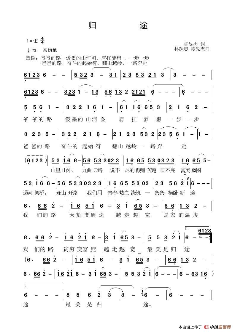 关于《归途》曲谱的评论