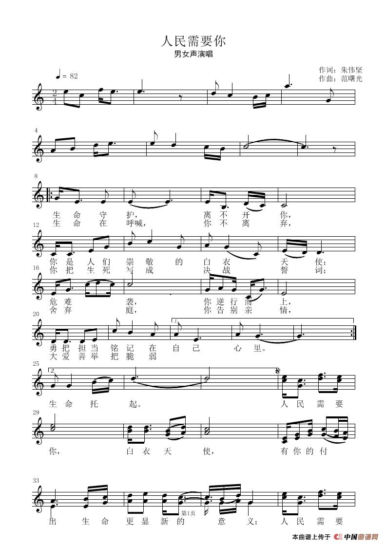 关于《人民需要你》曲谱的评论