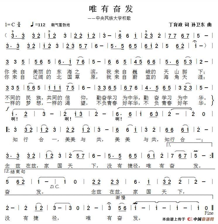 关于《唯有奋发(丁育政词孙卫东曲)》曲谱的评论
