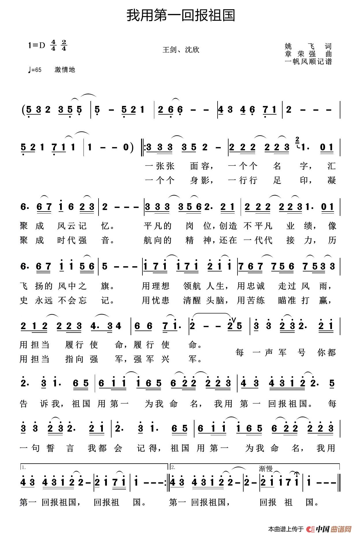 当前位置: 首页 谱友园地 谱友上传 我用第一回报祖国