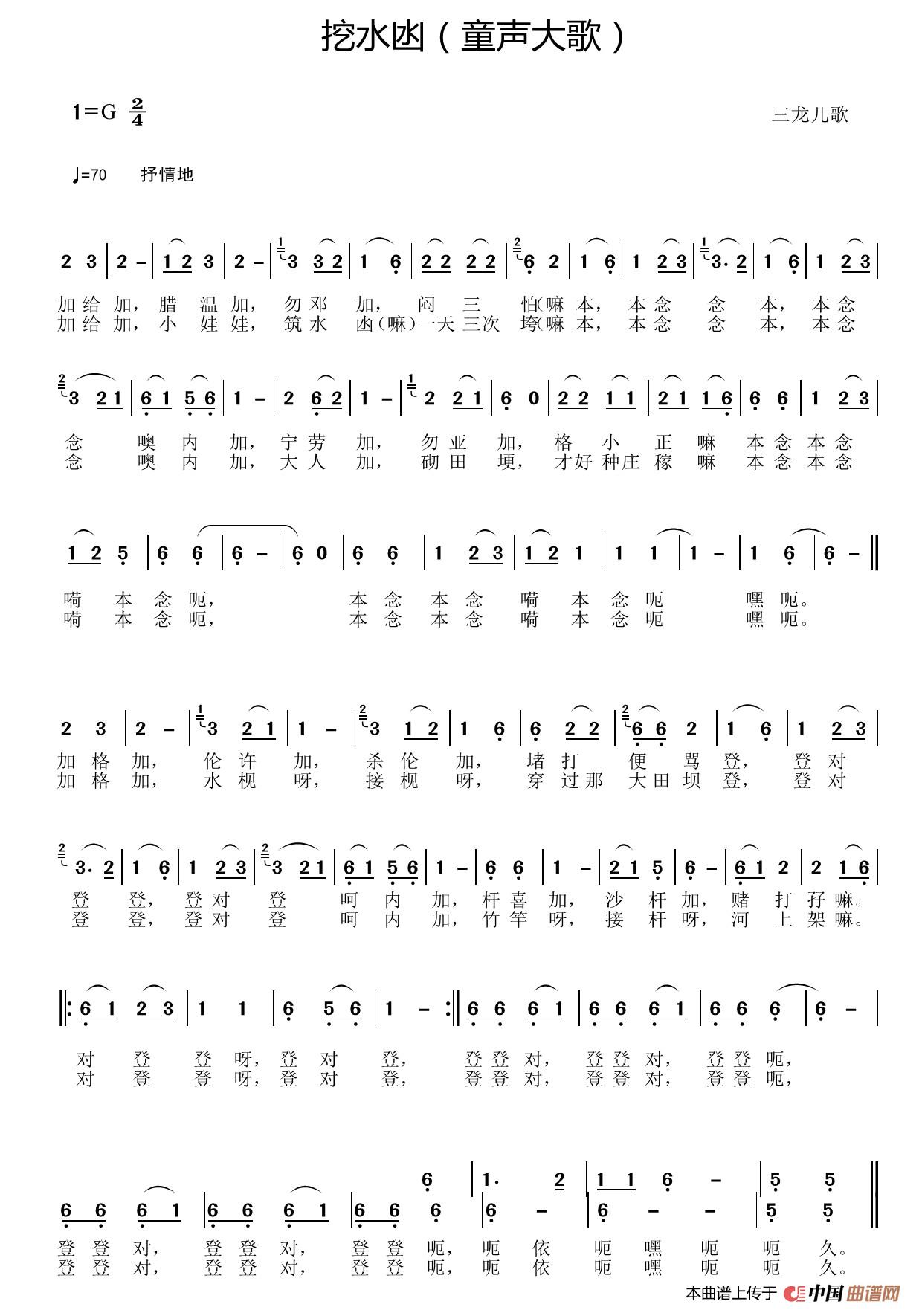 关于《挖水凼》曲谱的评论