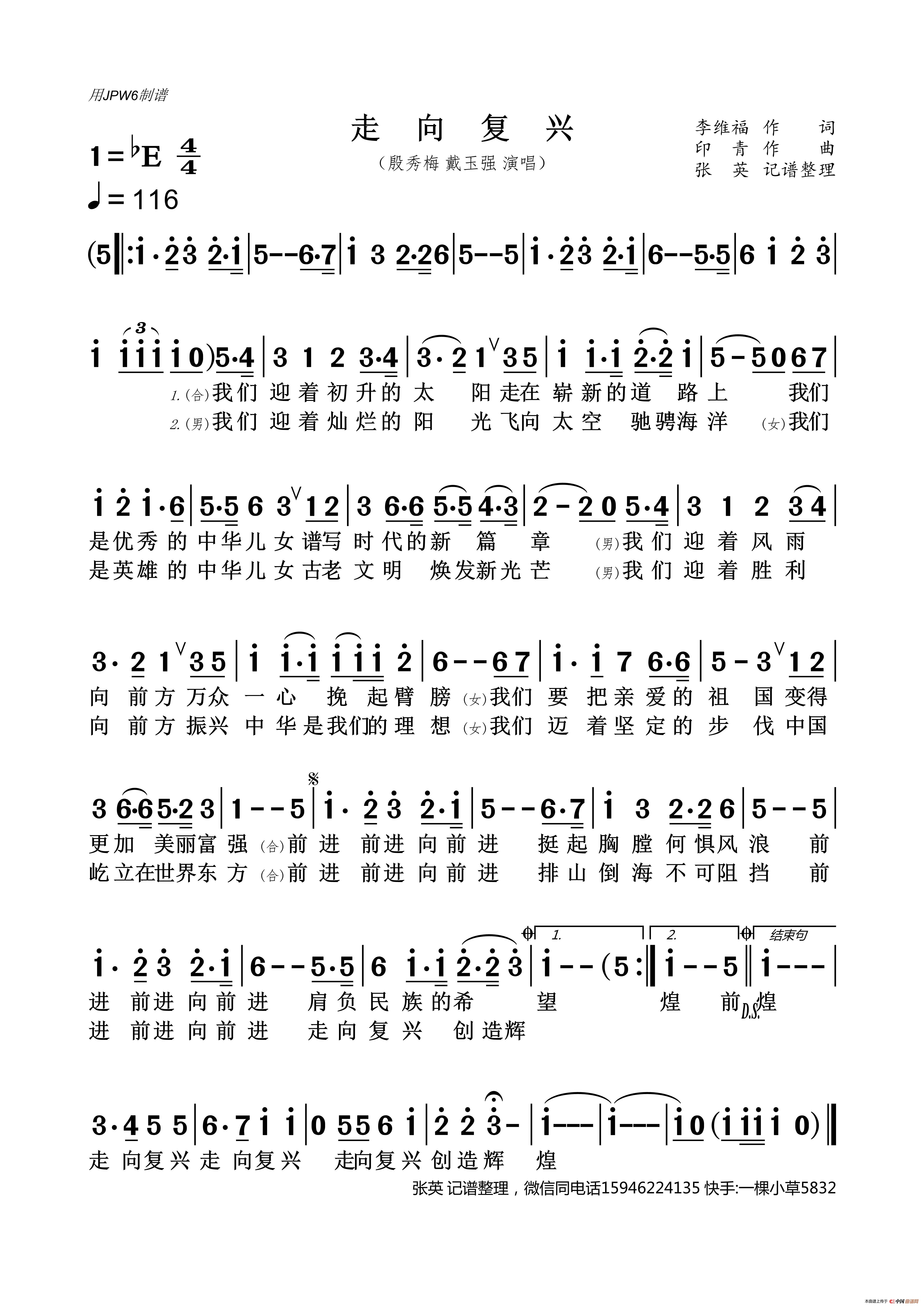 关于《走向复兴》曲谱的评论
