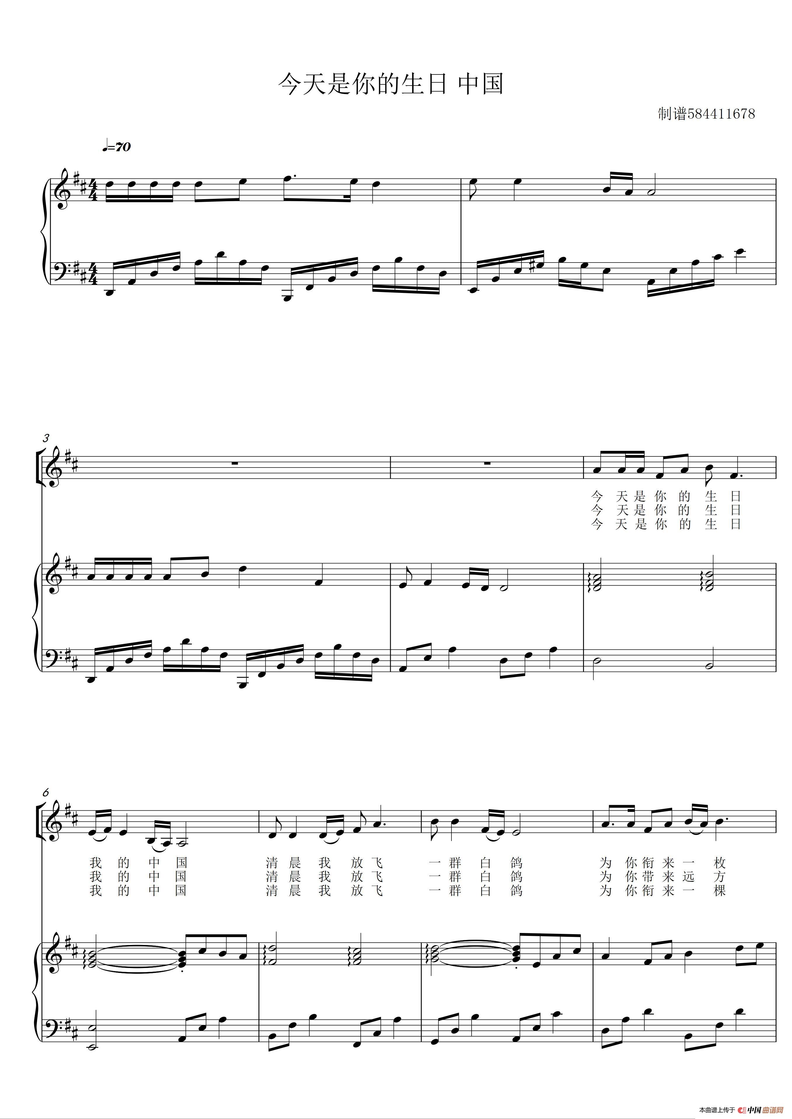 今天是你的生日中国二部合唱谱