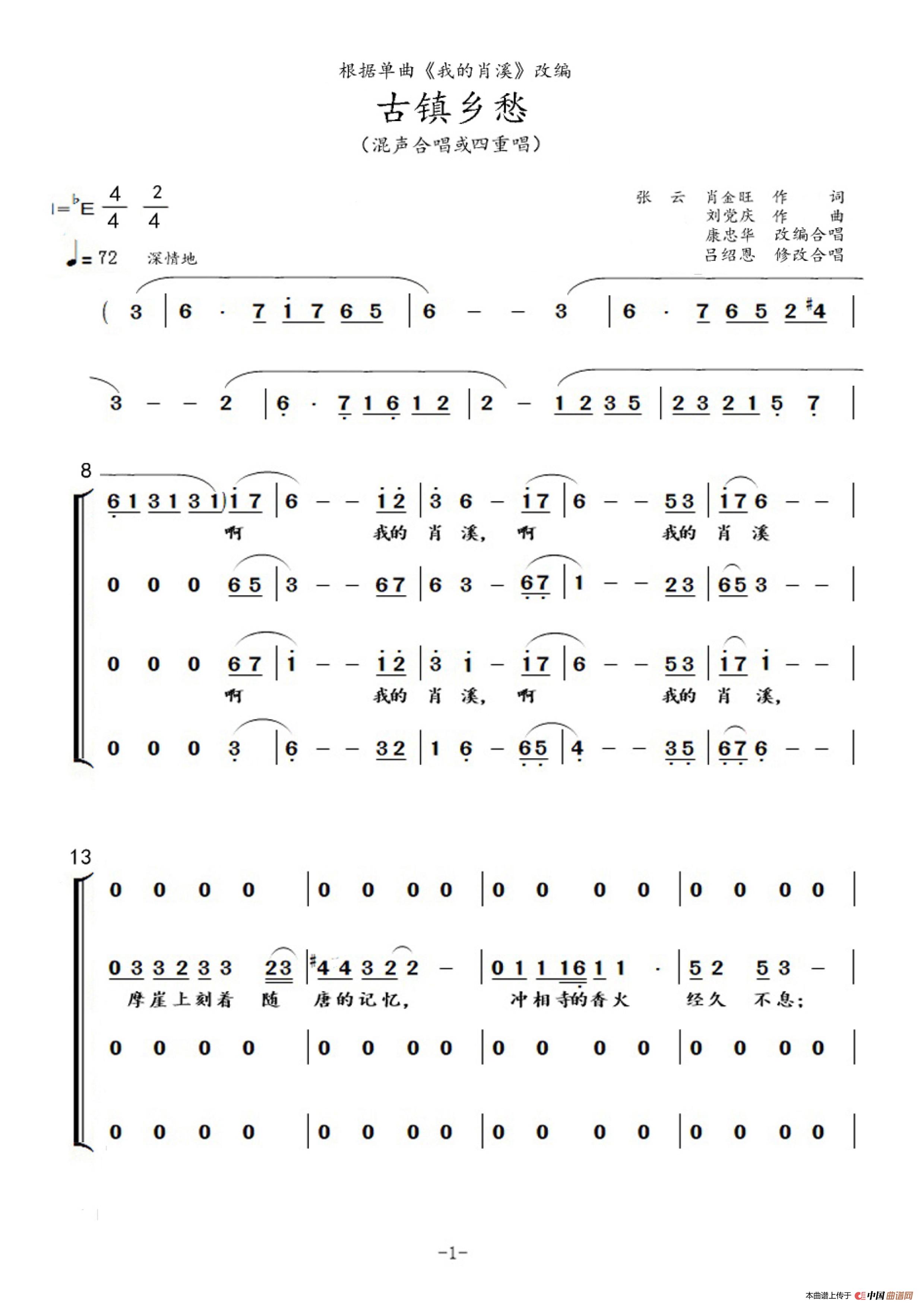 关于《古镇乡愁》曲谱的评论