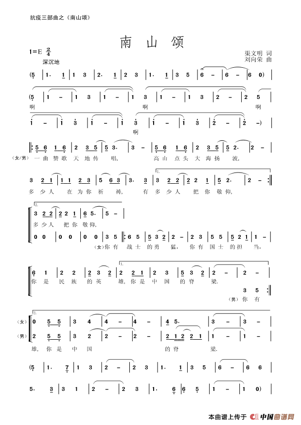 抗疫三部曲之《南山颂》作词:渠文明 作曲:刘向荣