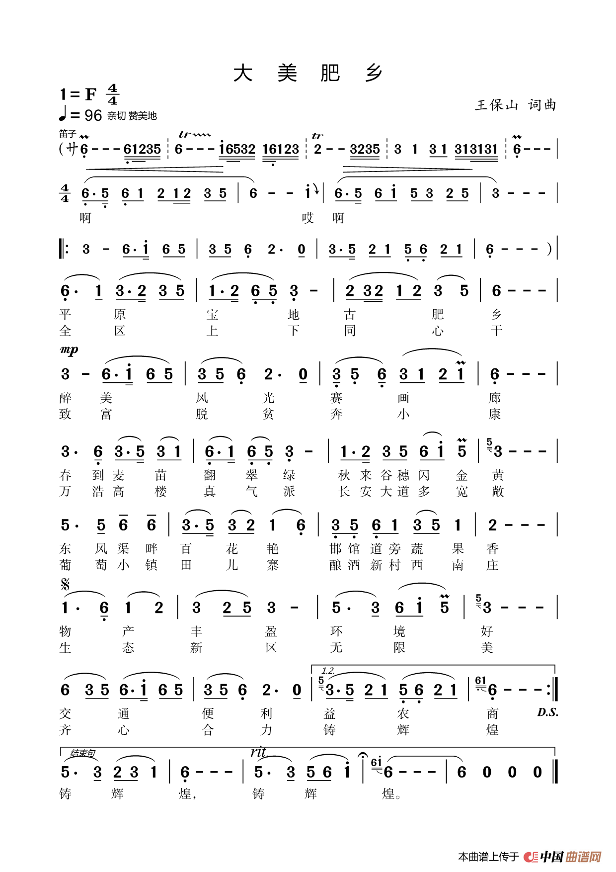 关于《大美肥乡》曲谱的评论