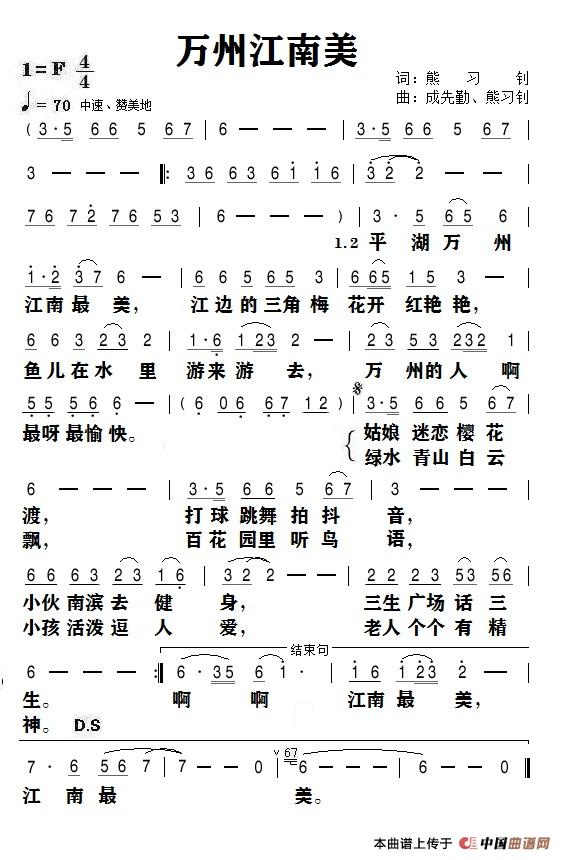 关于《万州江南美》曲谱的评论