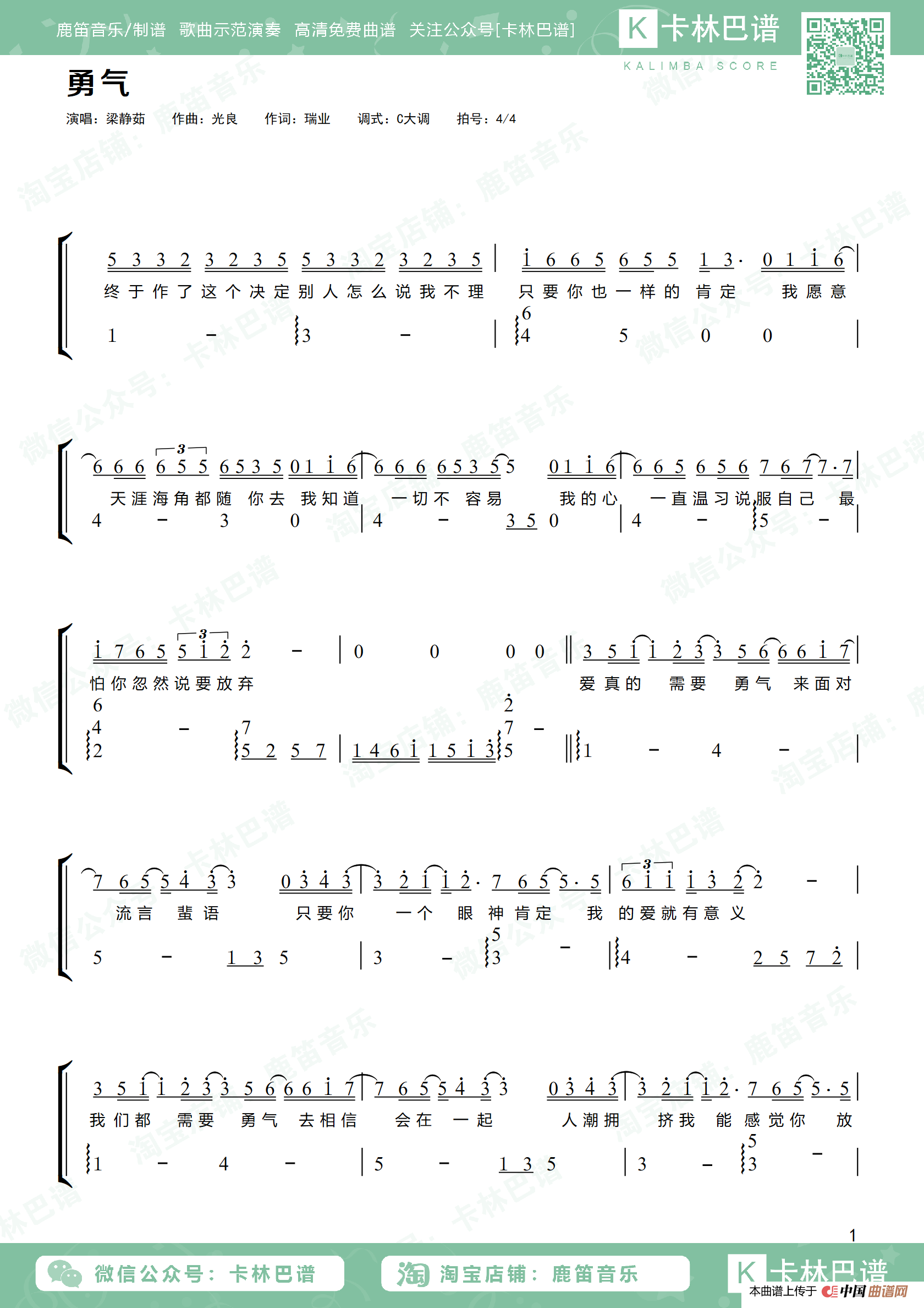 勇气(卡林巴拇指琴简谱)(1)_原文件名:勇气-简谱_0001.png
