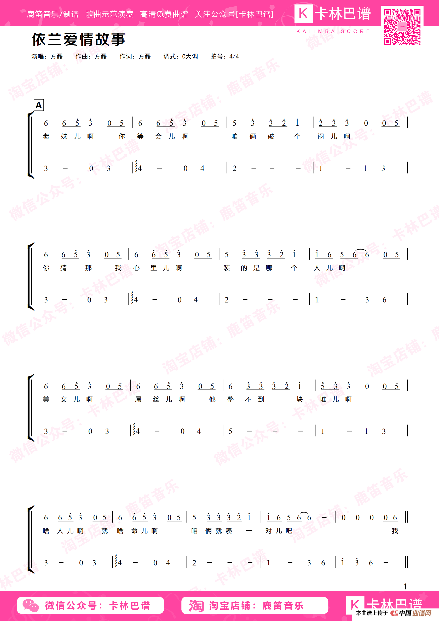 提示:在曲谱图片上单击右键,选择“图片另存为...”即可将曲谱保存到您的电脑中,打印时候可将图片插入到WORD中,调整合适大小打印即可。
