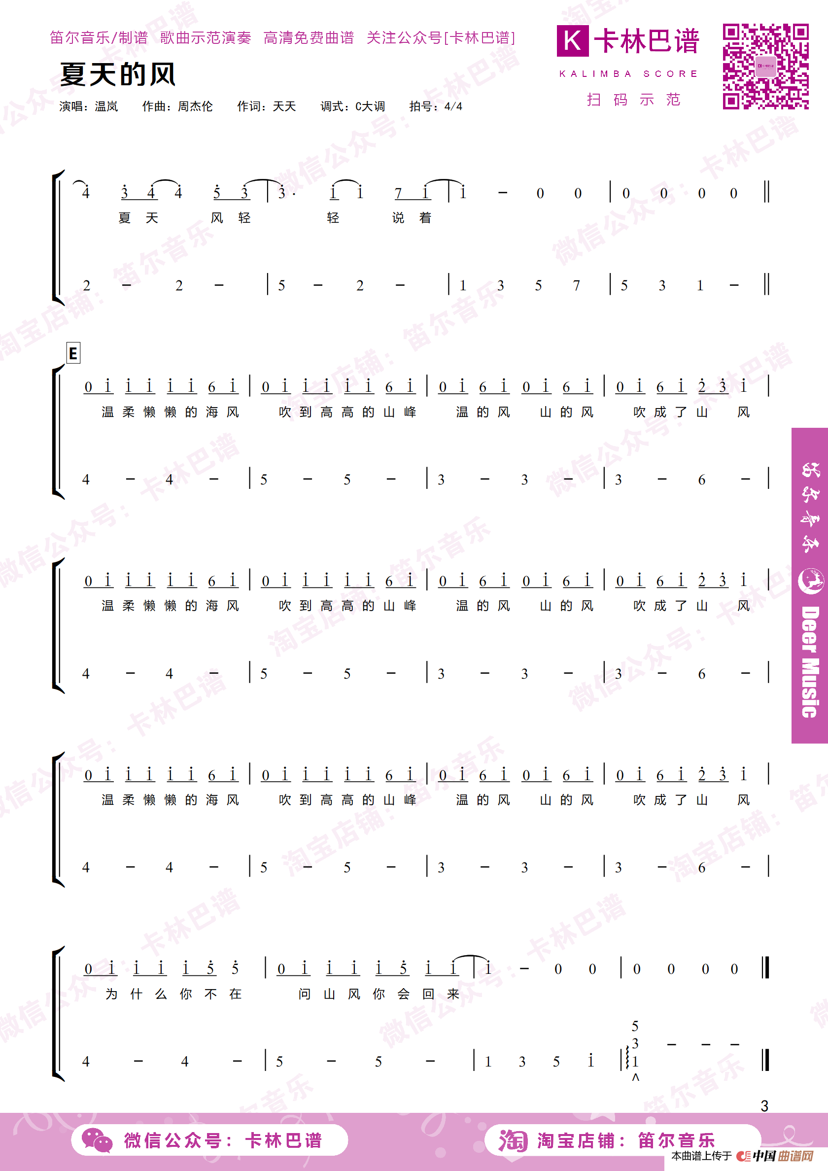 关于《夏天的风》曲谱的评论