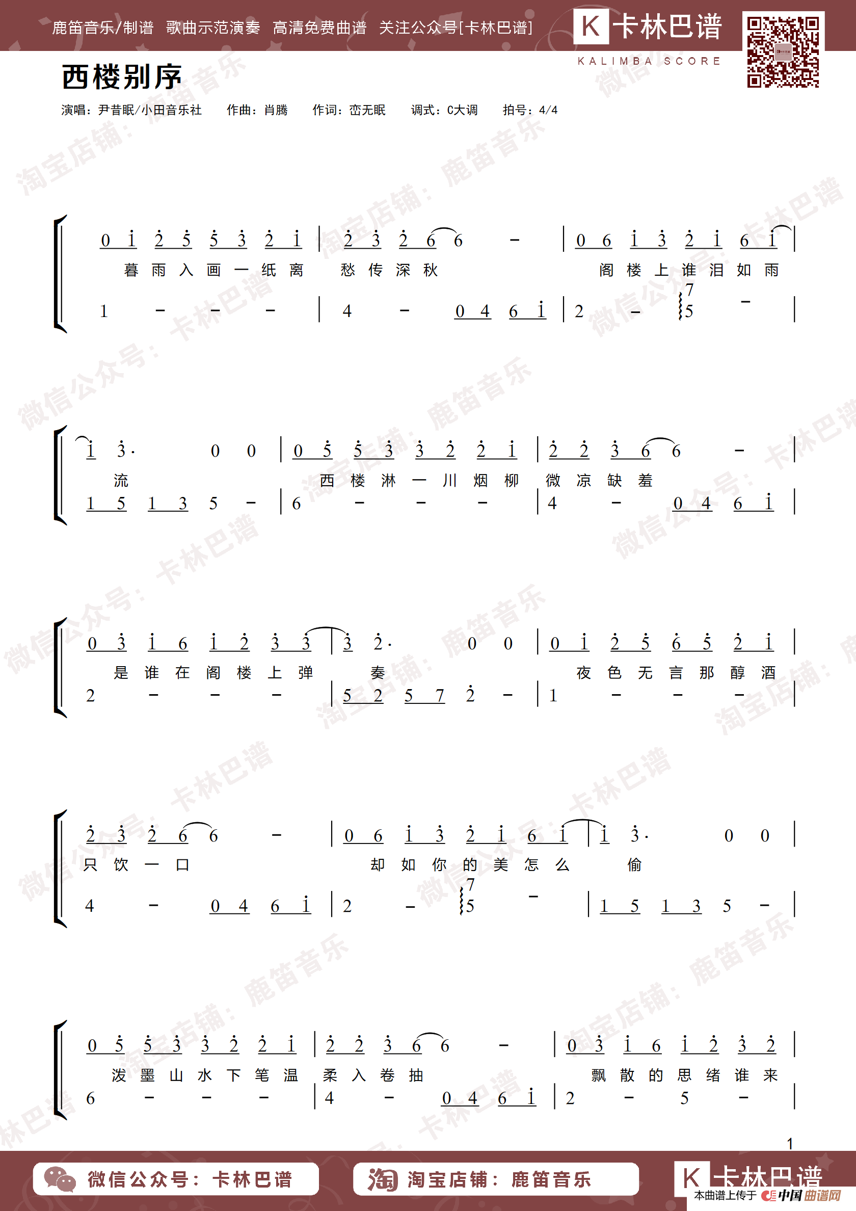 提示:在曲谱图片上单击右键,选择“图片另存为...”即可将曲谱保存到您的电脑中,打印时候可将图片插入到WORD中,调整合适大小打印即可。