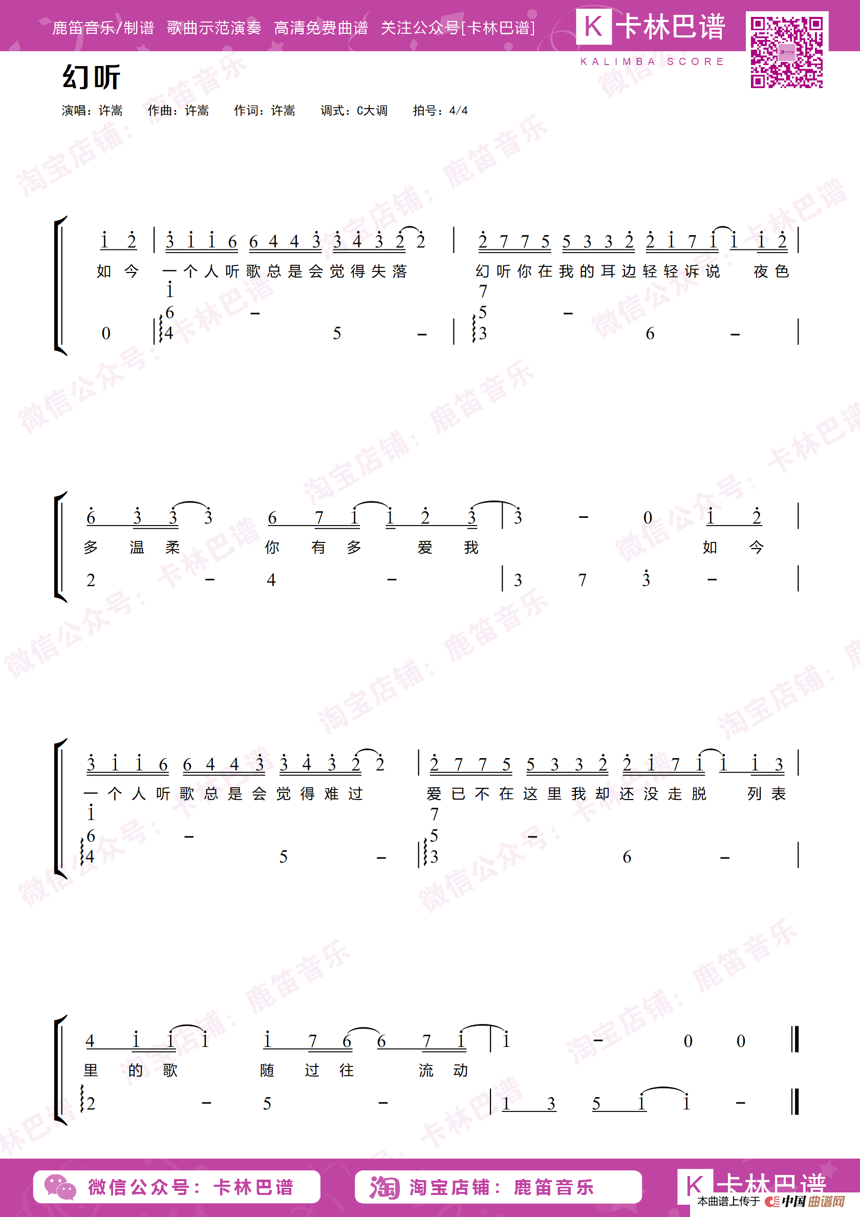 关于《幻听》曲谱的评论