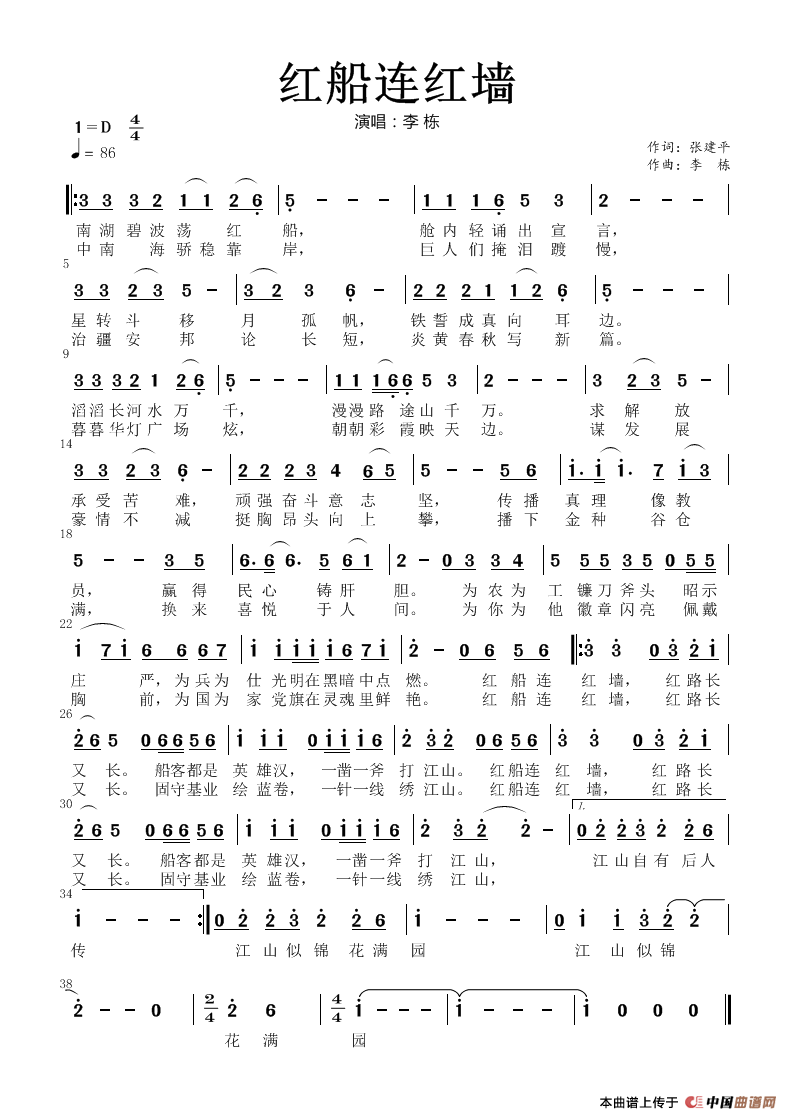 关于《红船连红墙》曲谱的评论