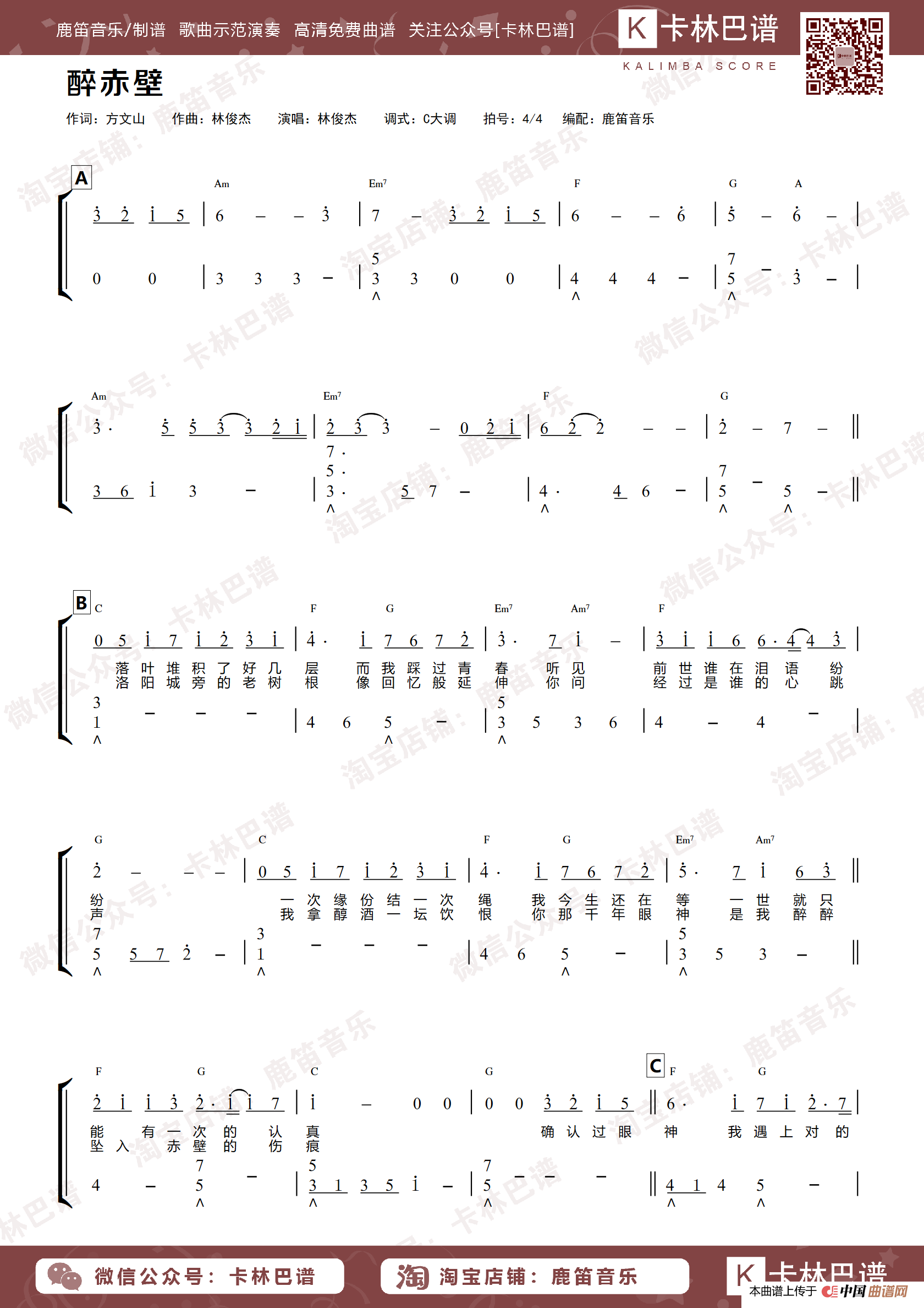 醉赤壁(卡林巴拇指琴简谱)(1)_原文件名:醉赤壁-简谱_0001.png