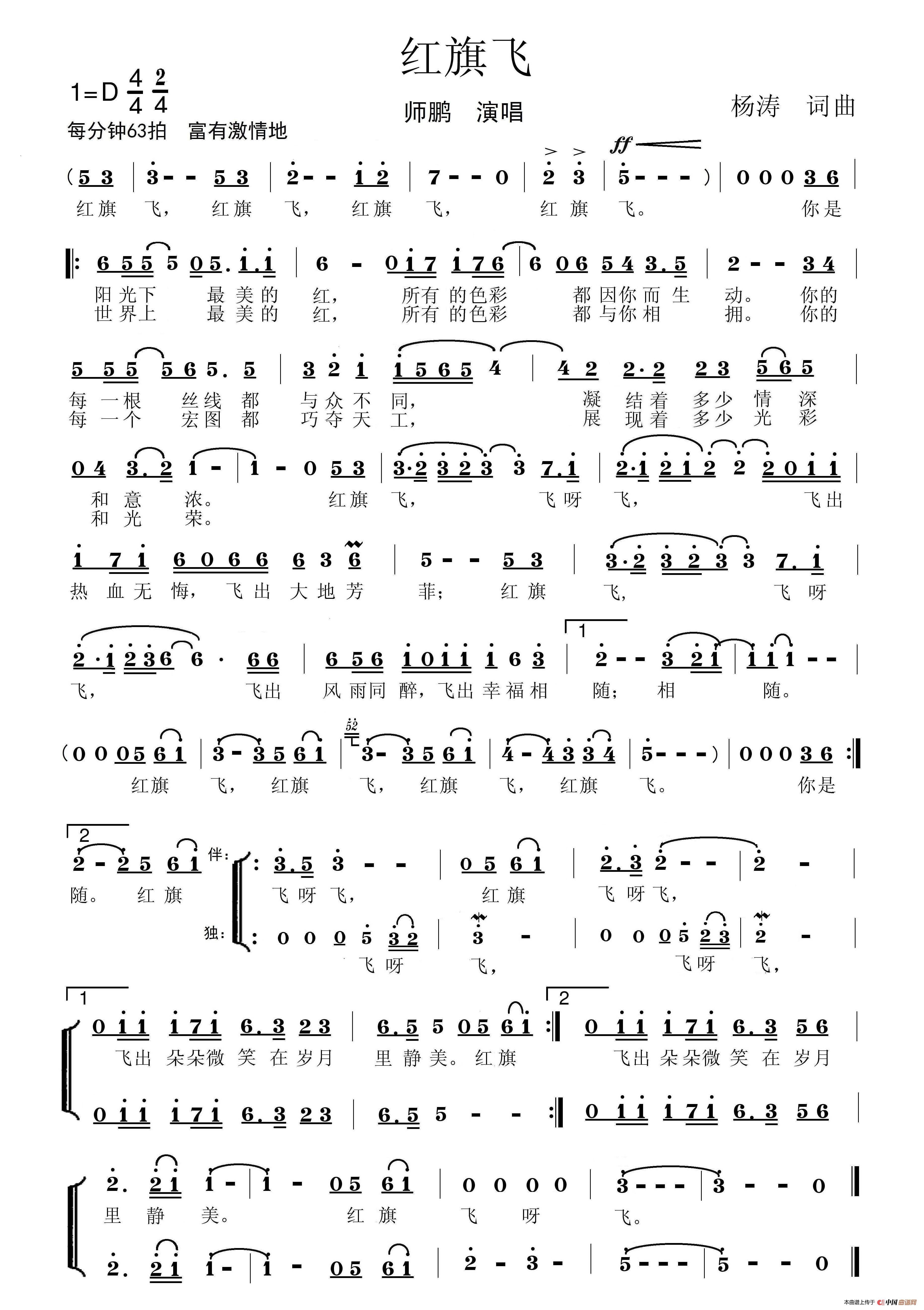 关于《红旗飞(师鹏)》曲谱的评论