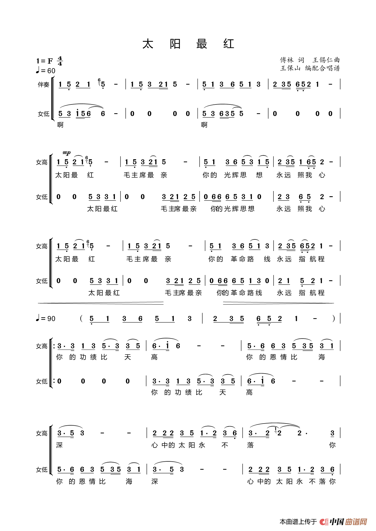 关于《太阳最红毛主席最亲》曲谱的评论