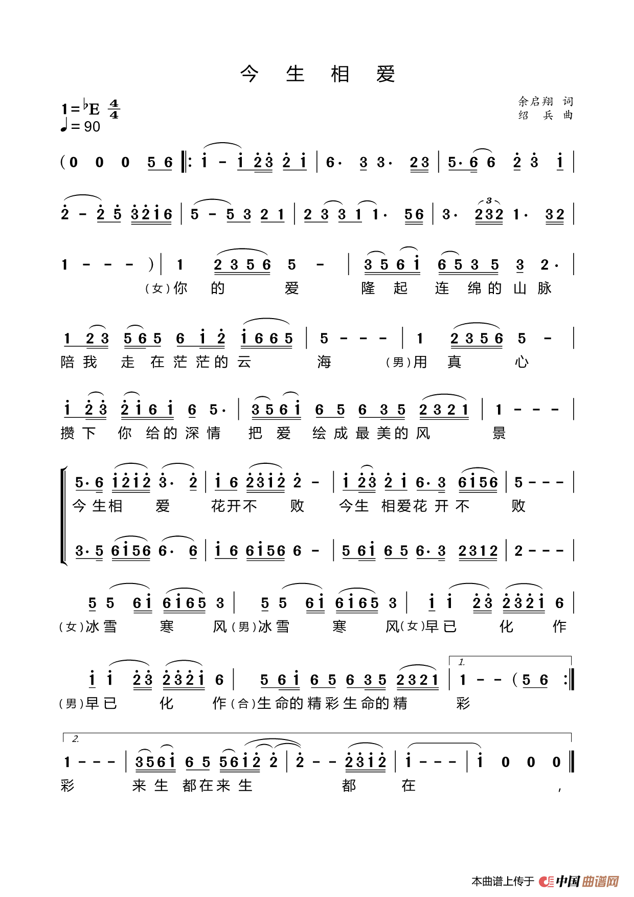 关于《今生相爱》曲谱的评论
