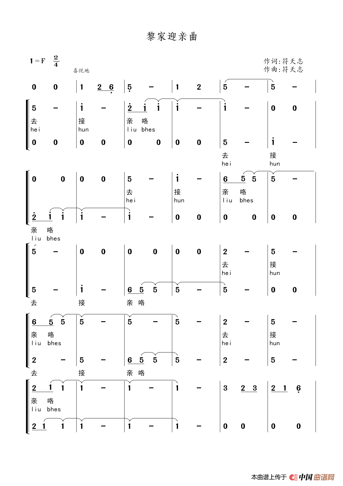 关于《黎家迎亲曲》曲谱的评论