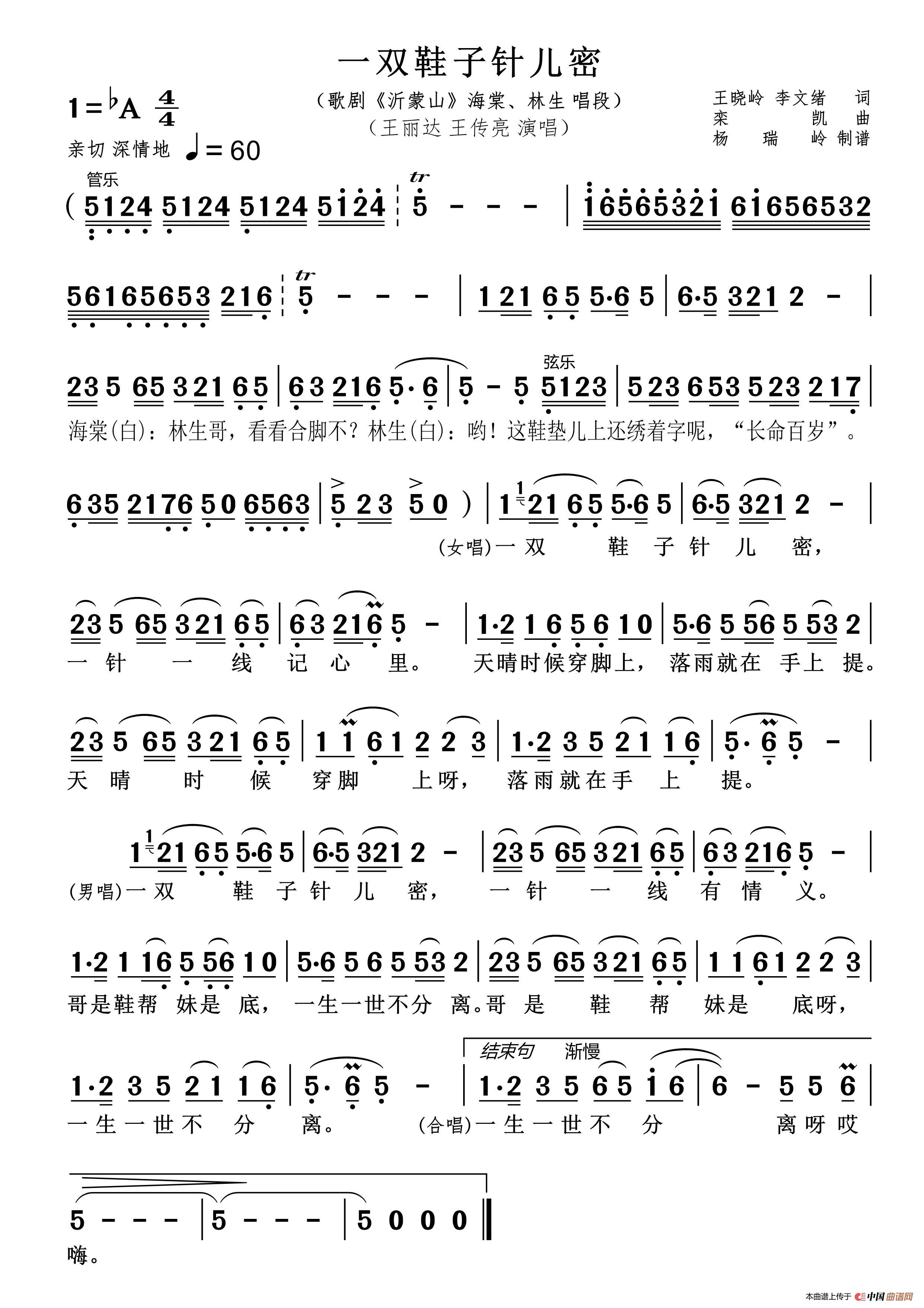 关于《一双鞋子针儿密(王丽达 王传亮 演唱)》曲谱的评论