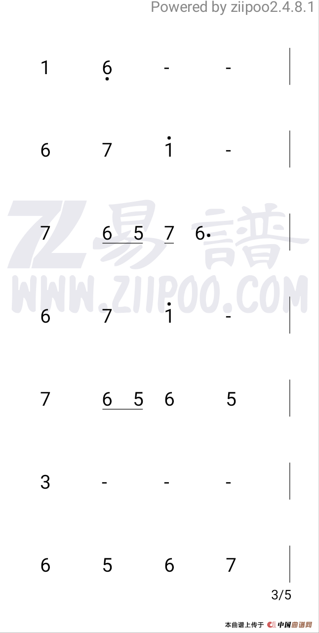 提示:在曲谱图片上单击右键,选择“图片另存为...”即可将曲谱保存到您的电脑中,打印时候可将图片插入到WORD中,调整合适大小打印即可。