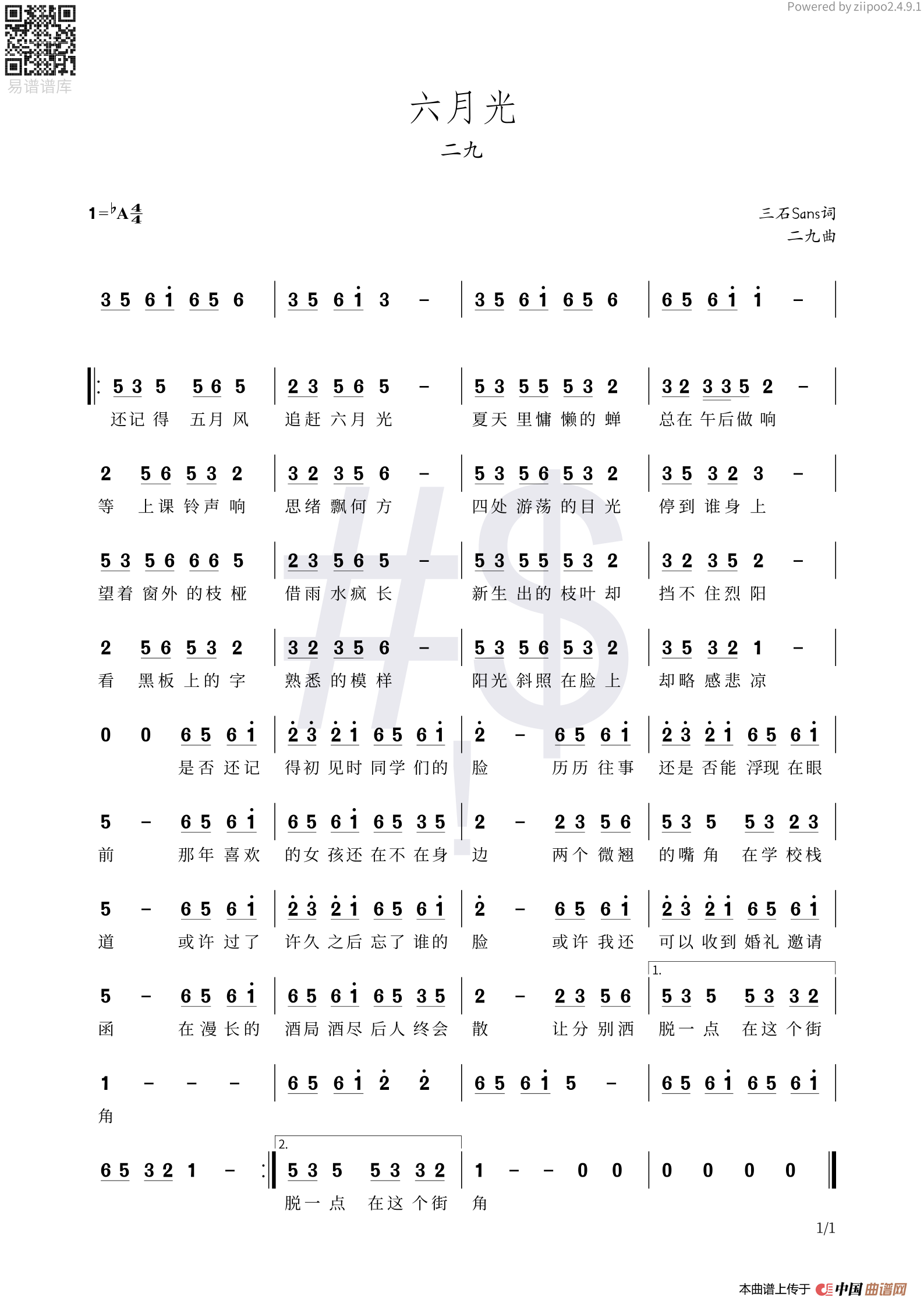 作词:三石Sans 作曲:二九 演唱(奏):二九 来源:谱友失败是成功上传 上传:失败是成功