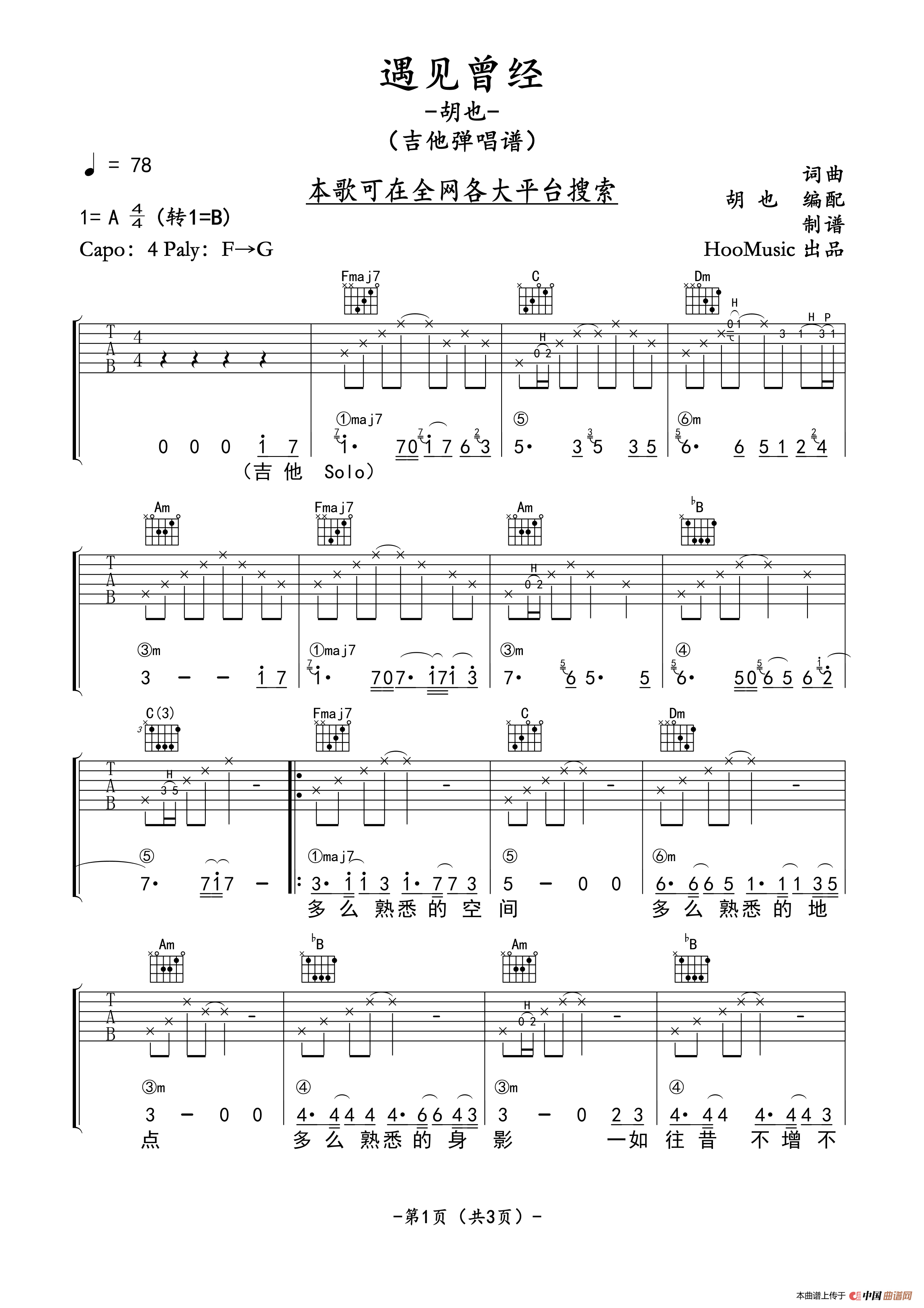 关于《遇见曾经》曲谱的评论