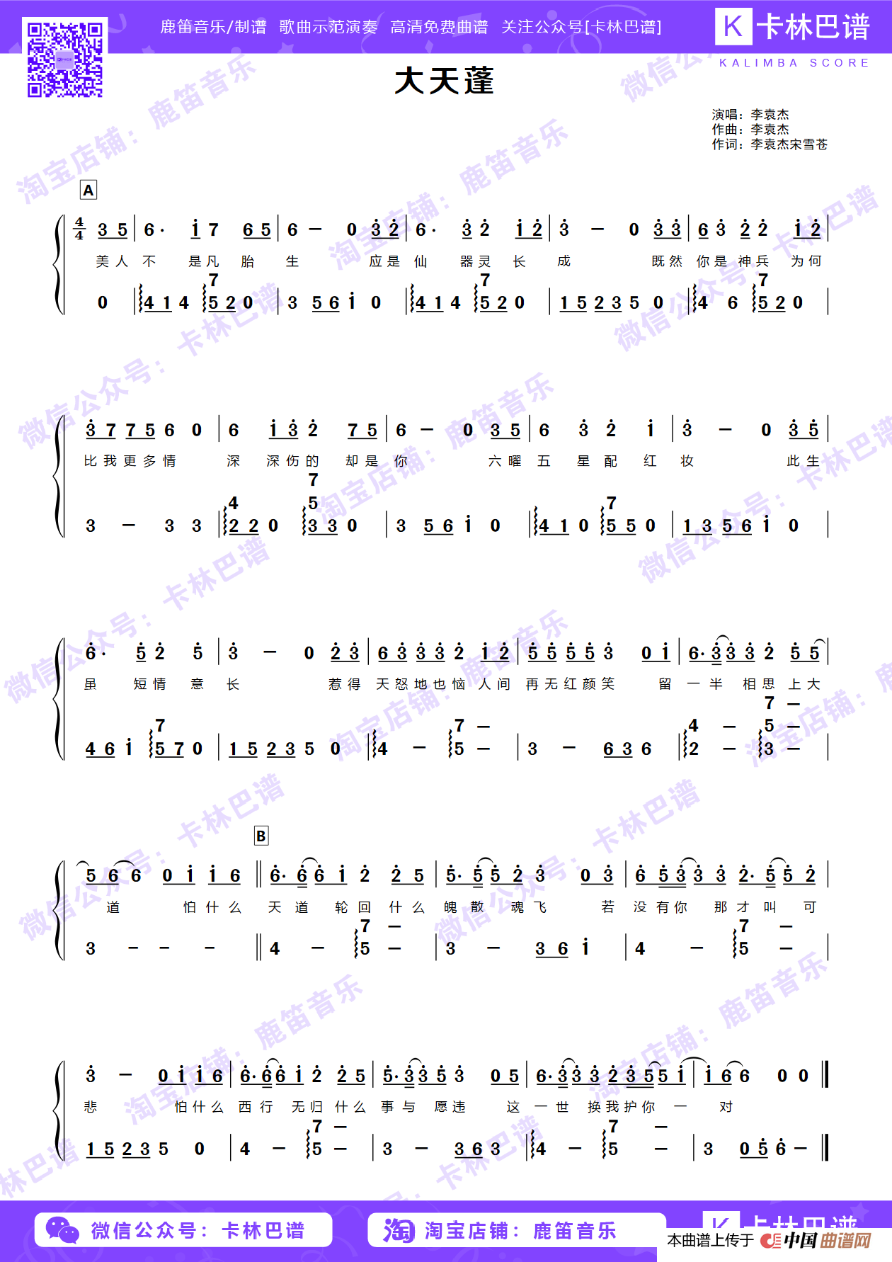 提示:在曲谱图片上单击右键,选择“图片另存为...”即可将曲谱保存到您的电脑中,打印时候可将图片插入到WORD中,调整合适大小打印即可。