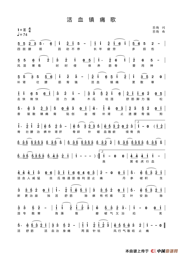关于《活血镇痛歌》曲谱的评论
