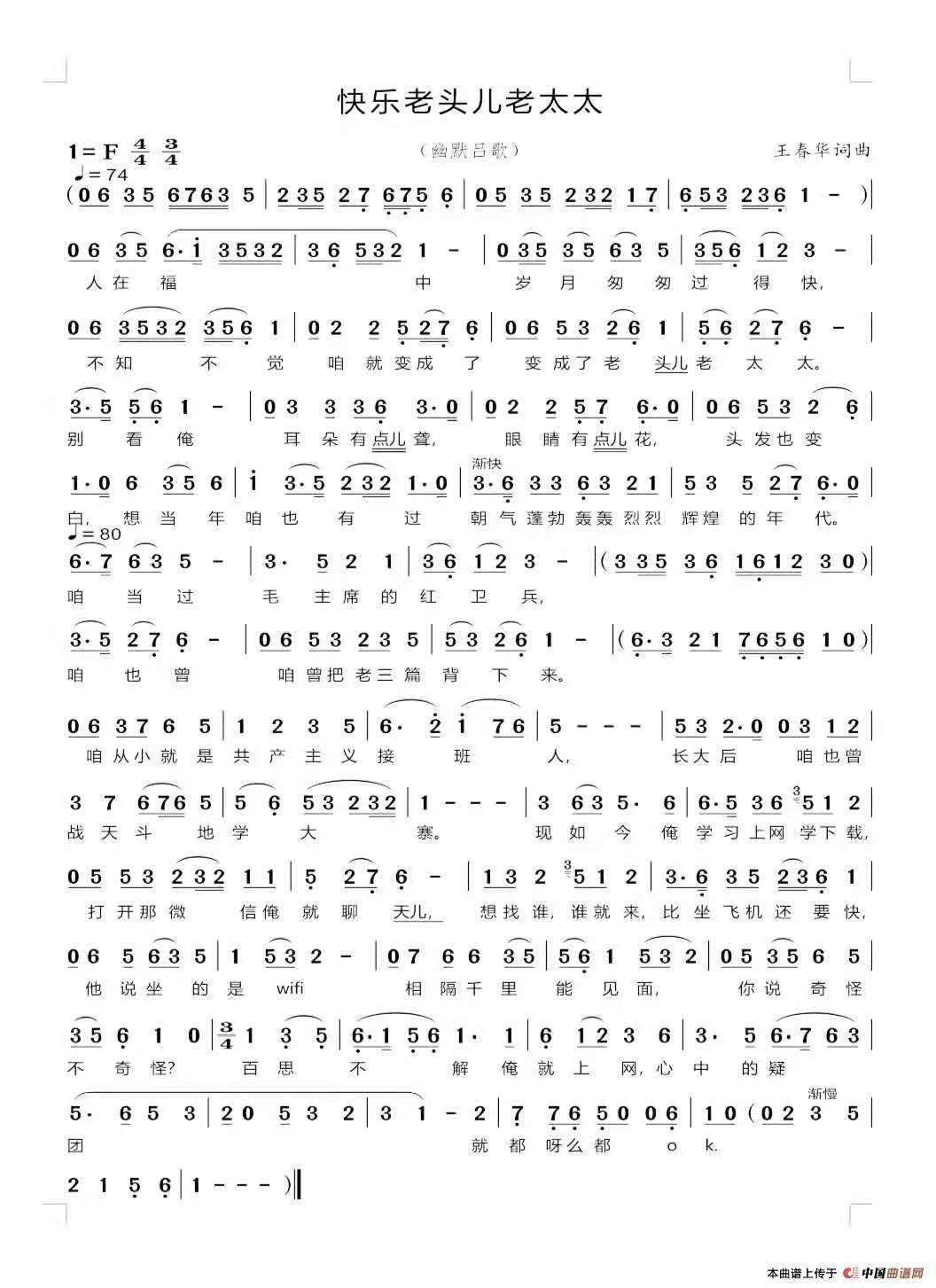 关于《快乐老头儿老太太》曲谱的评论