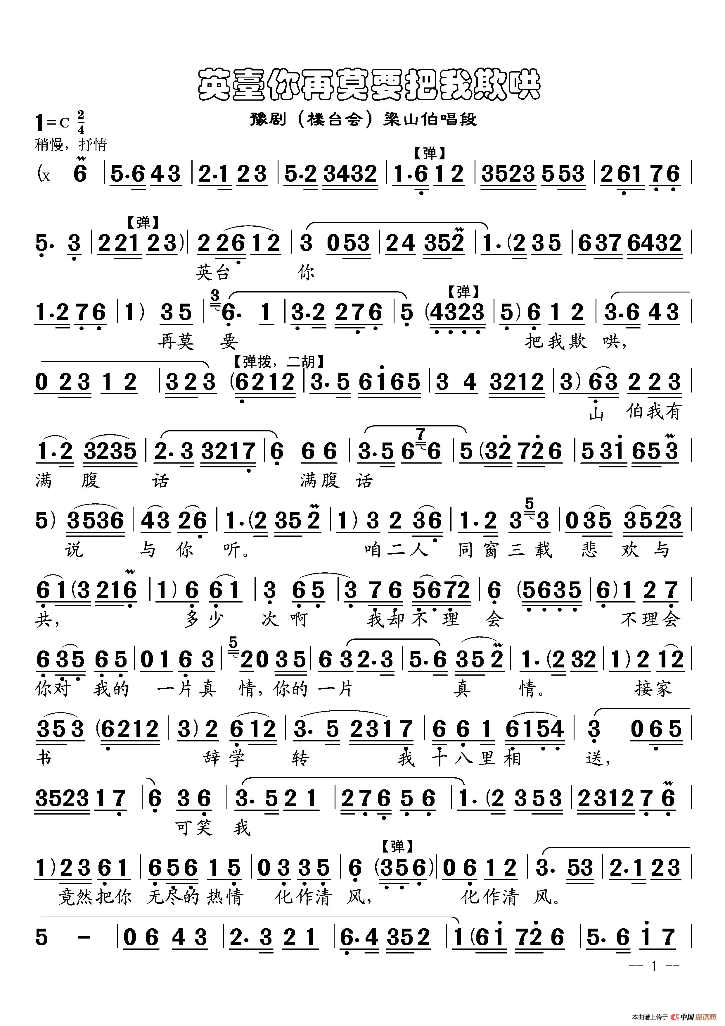 关于《豫剧曲谱《英台你再莫要把我欺哄》》曲谱的评论