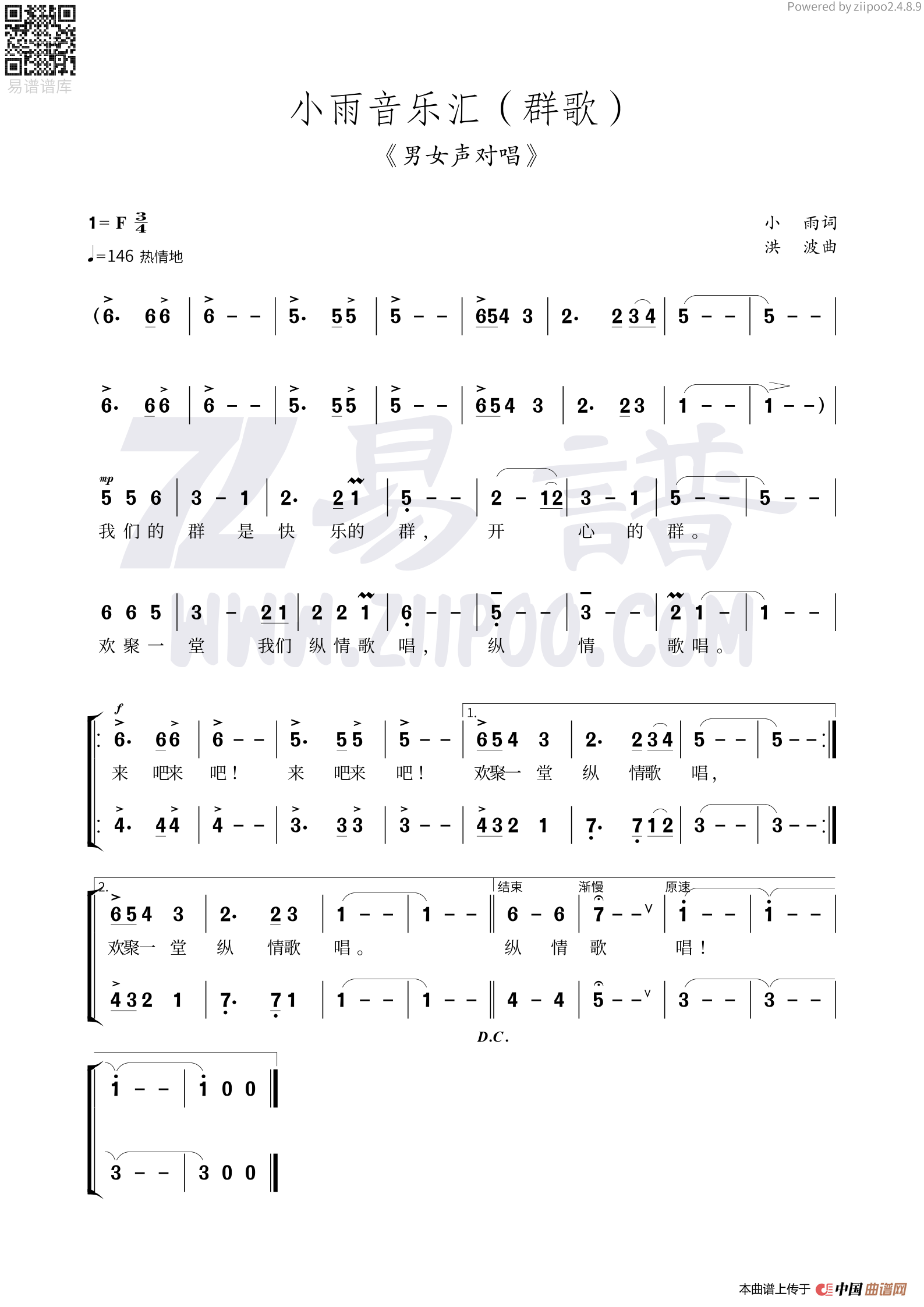 提示:在曲谱图片上单击右键,选择“图片另存为...”即可将曲谱保存到您的电脑中,打印时候可将图片插入到WORD中,调整合适大小打印即可。