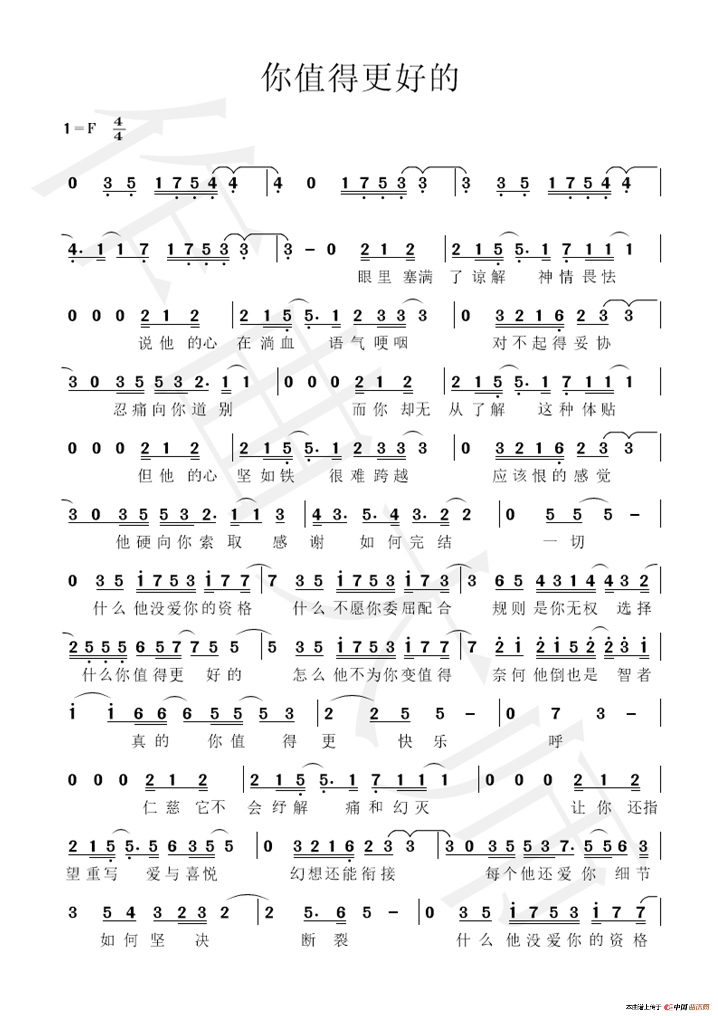 关于《你值得更好的》曲谱的评论