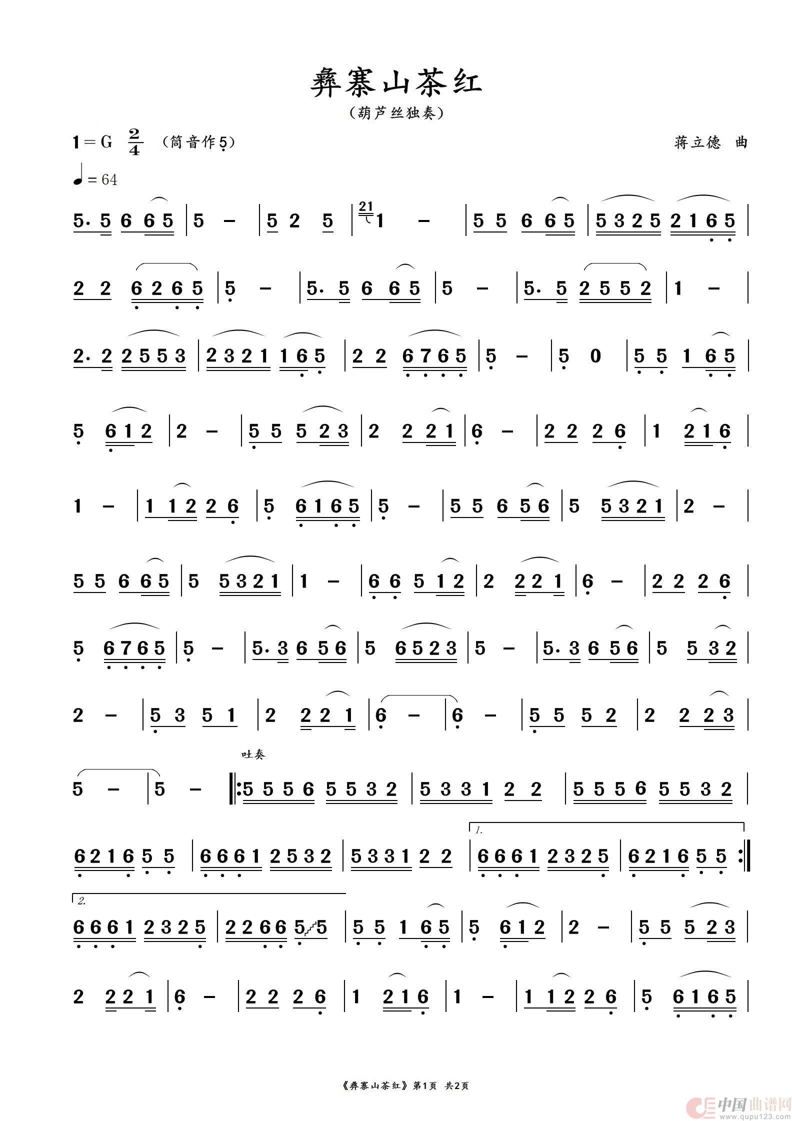 彝寨山茶红(葫芦丝独奏曲)