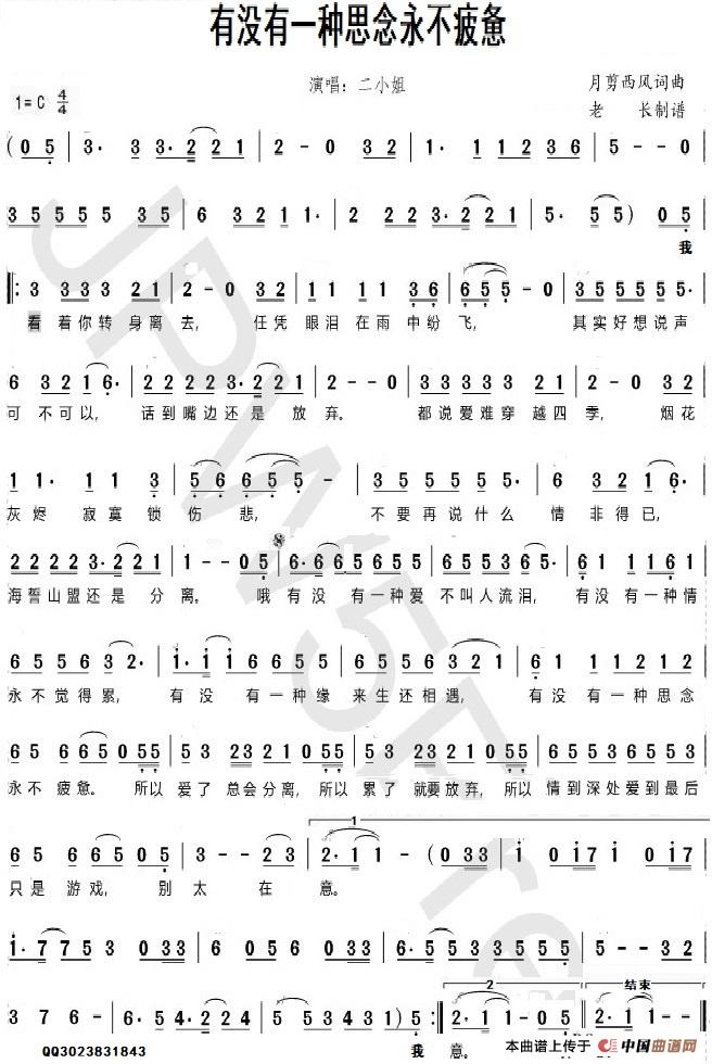 关于《有没有一种思念永不疲惫》曲谱的评论