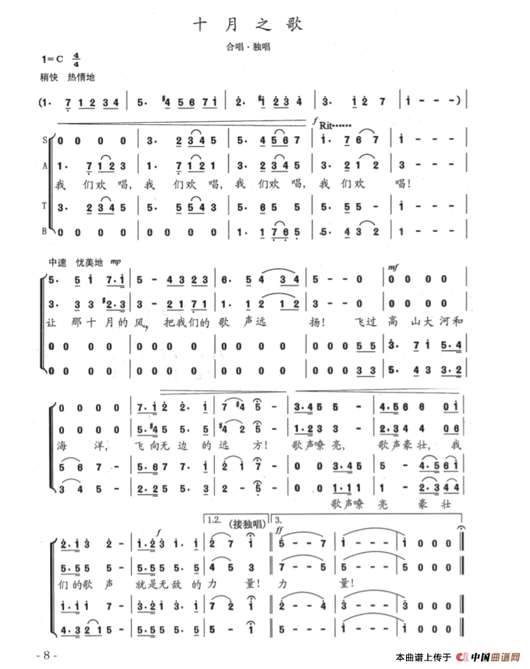 关于《十月之歌》曲谱的评论