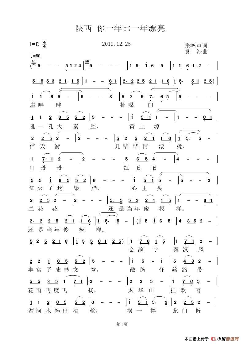 关于《陕西 你一年比一年漂亮》曲谱的评论