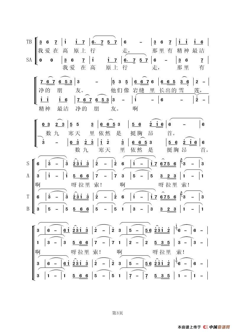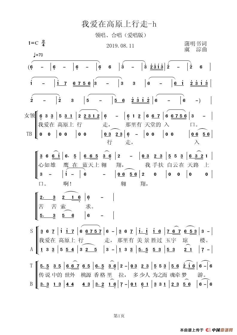 关于《我爱在高原上行走》曲谱的评论