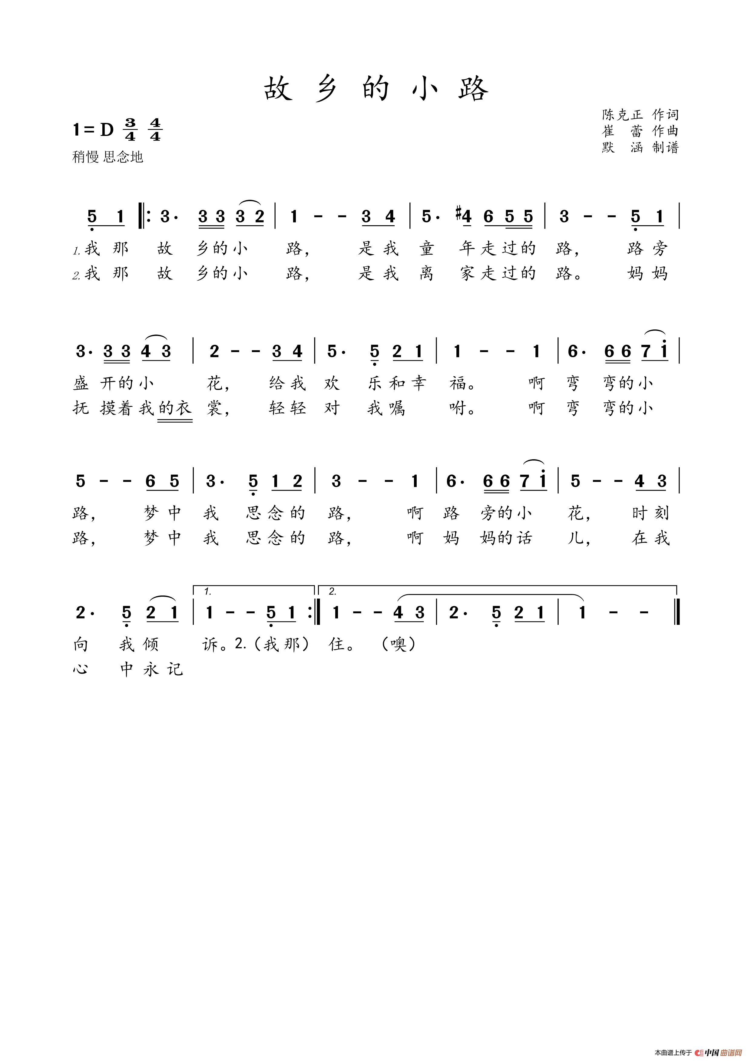 当前位置: 首页 谱友园地 谱友上传 故乡的小路