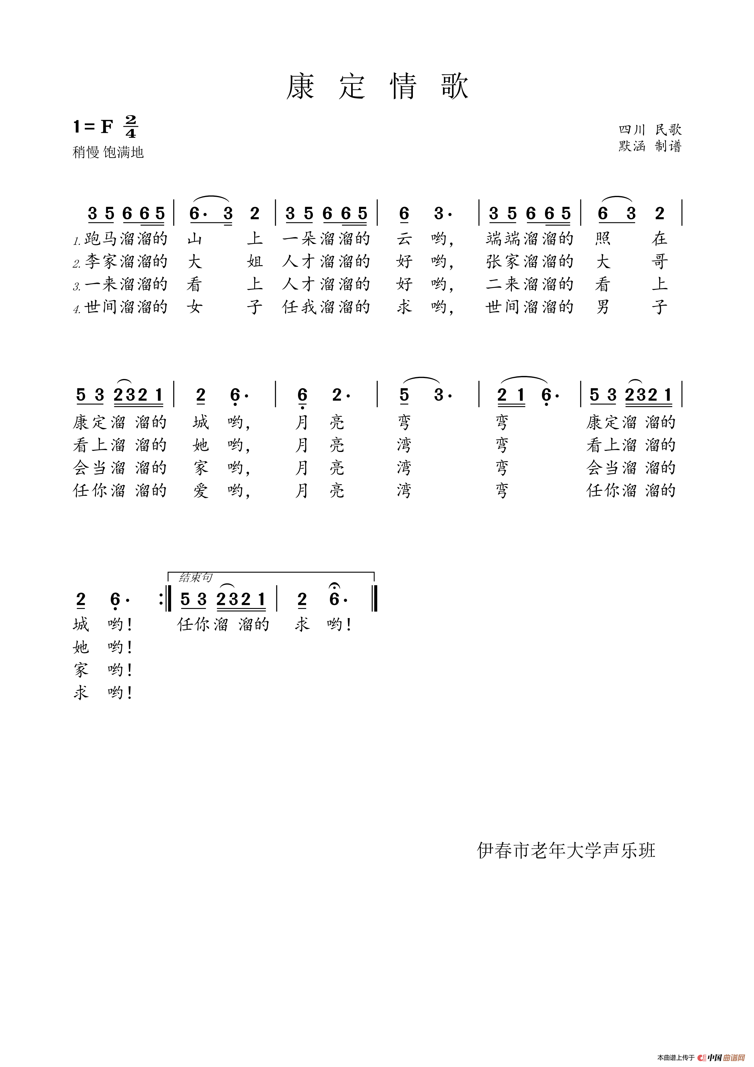 关于《康定情歌》曲谱的评论