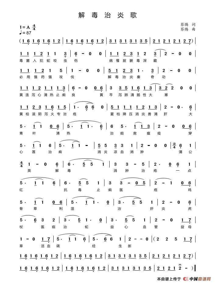关于《解毒治炎歌》曲谱的评论