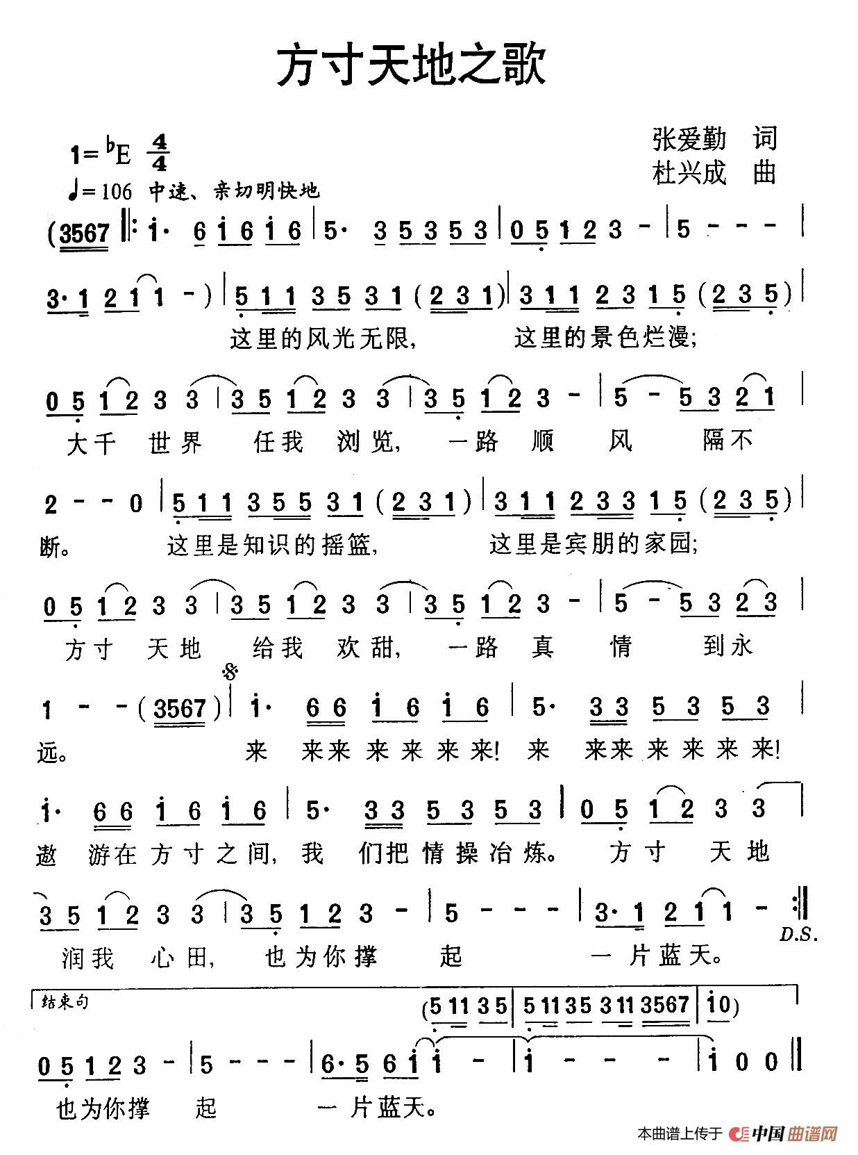 关于《方寸天地之歌》曲谱的评论