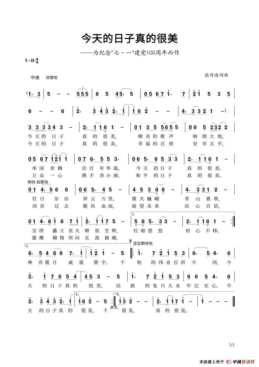 关于《今天的日子真的很美》曲谱的评论