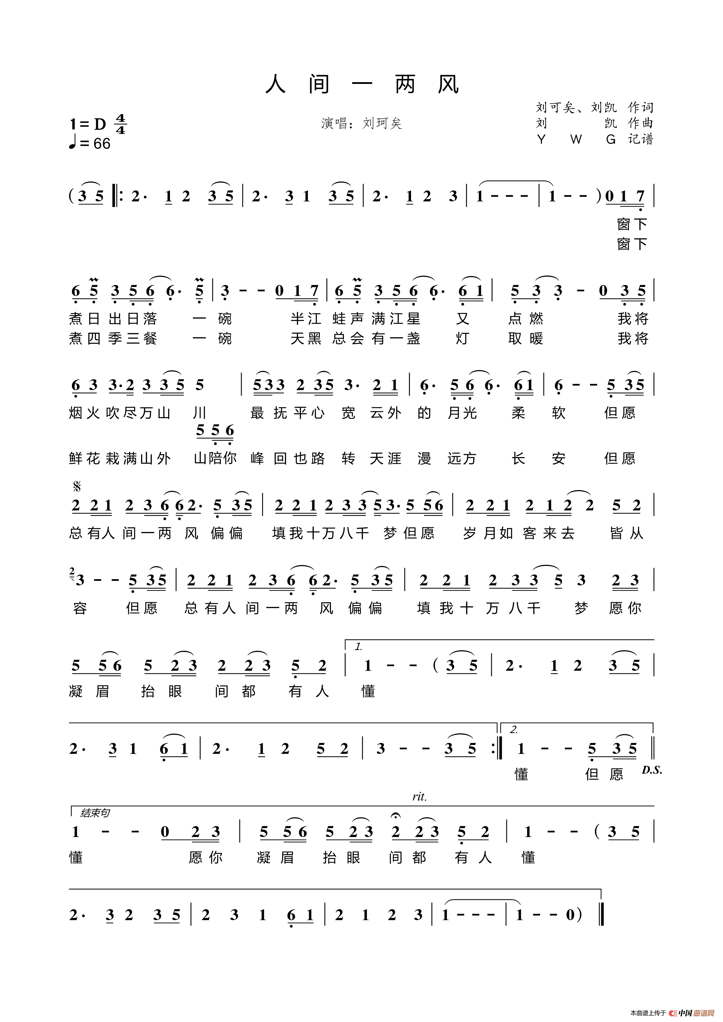 记谱:YWG根据演唱录音记谱